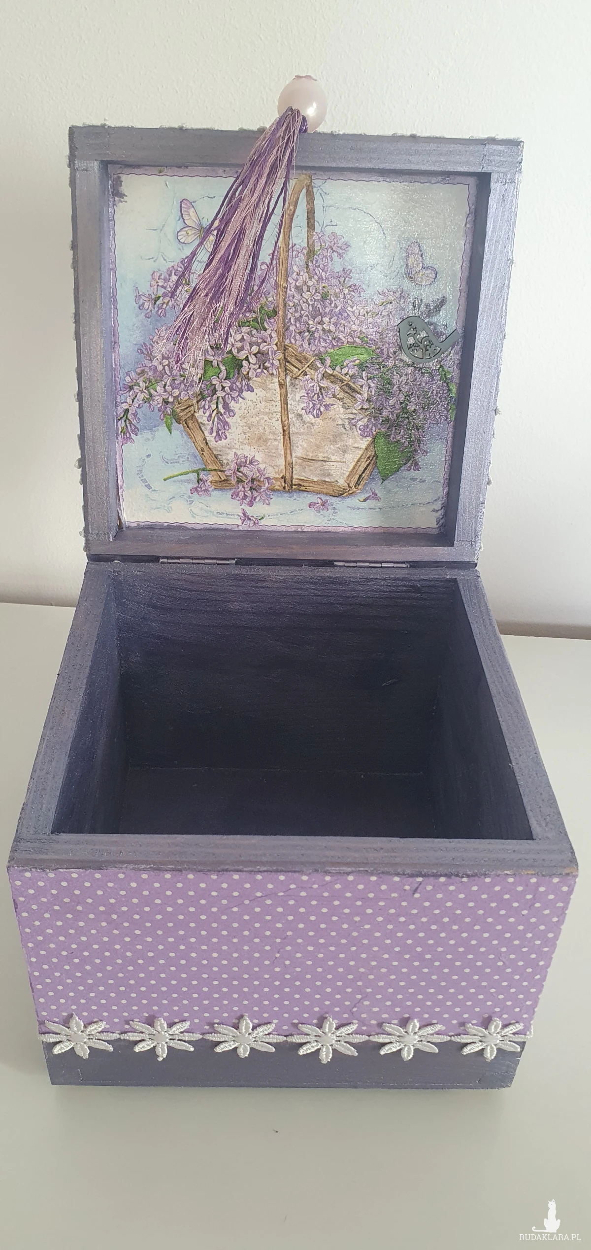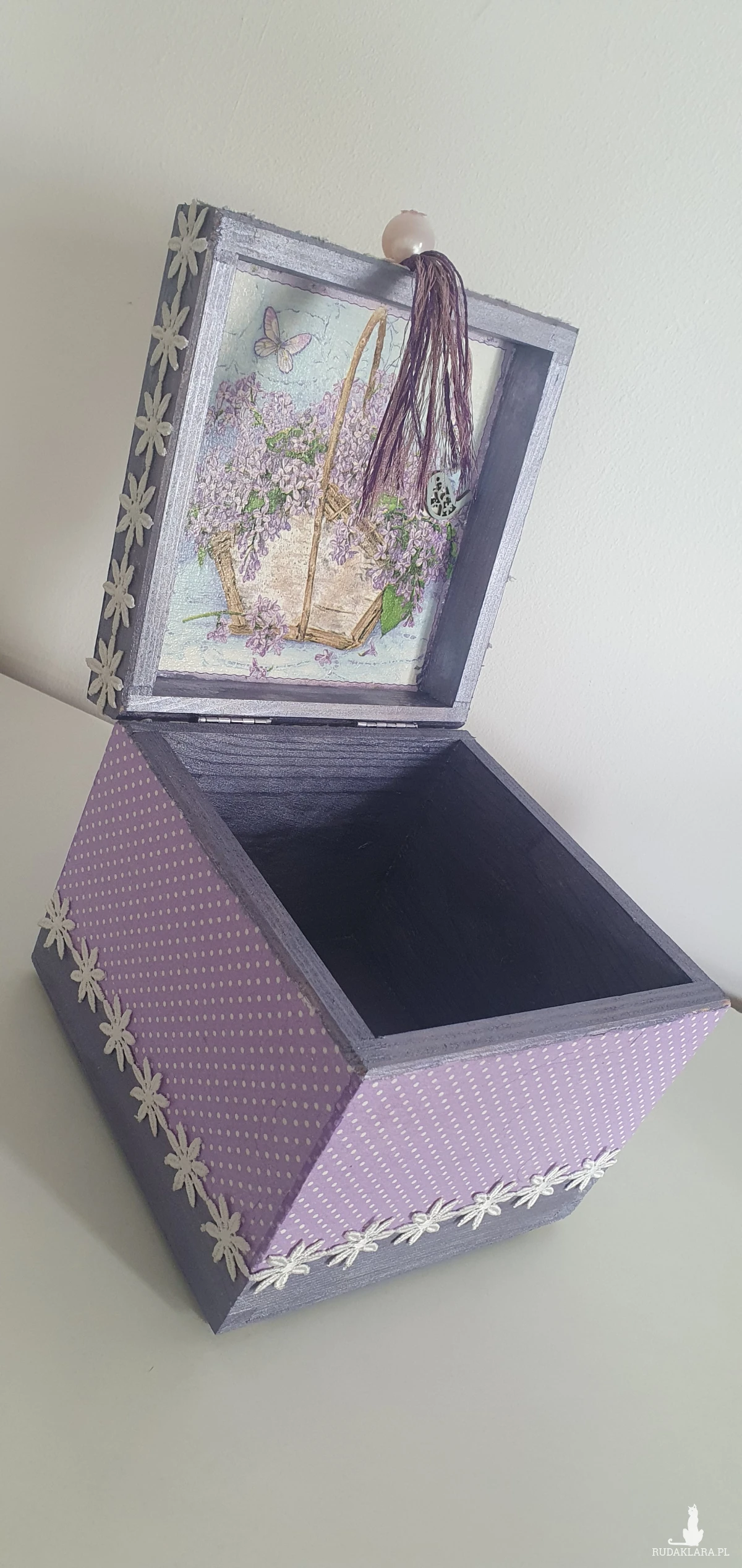 Wykonane metodą decoupage z ogromną dbałością o szczegóły