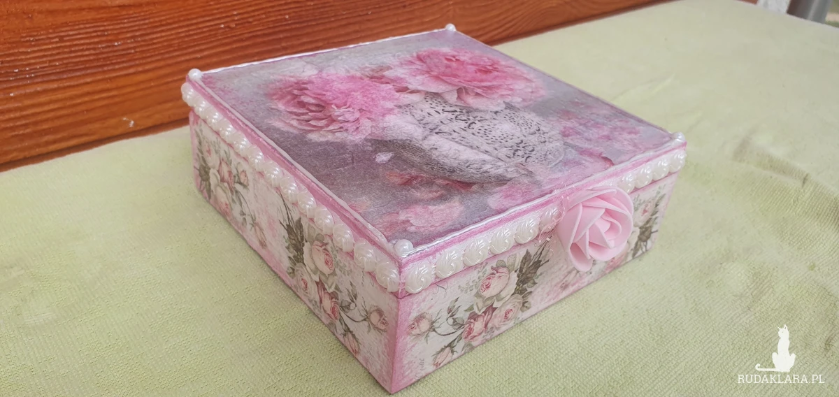 Wykonana metodą decoupage z wielką dbałością o szczegóły