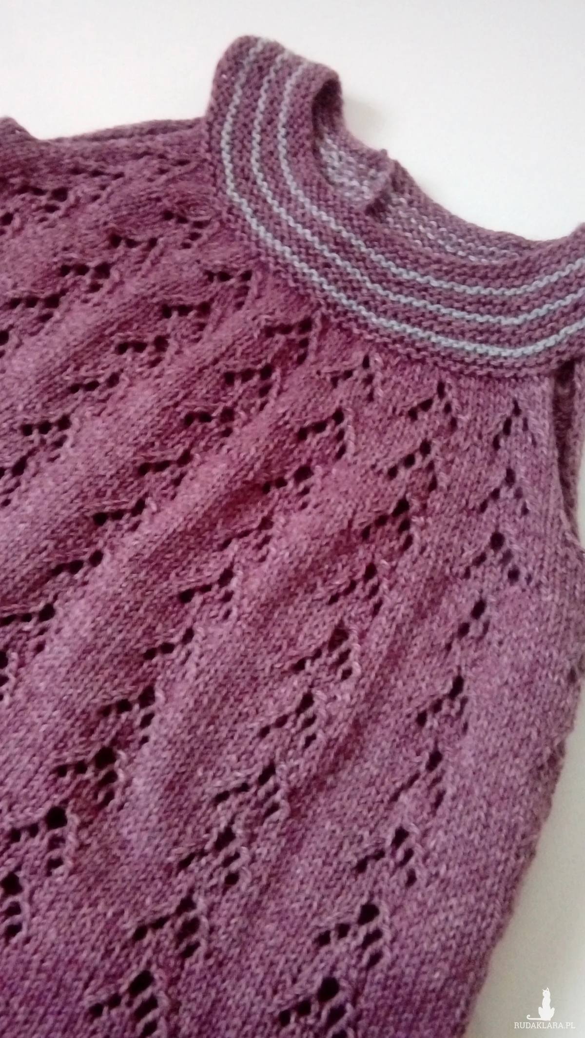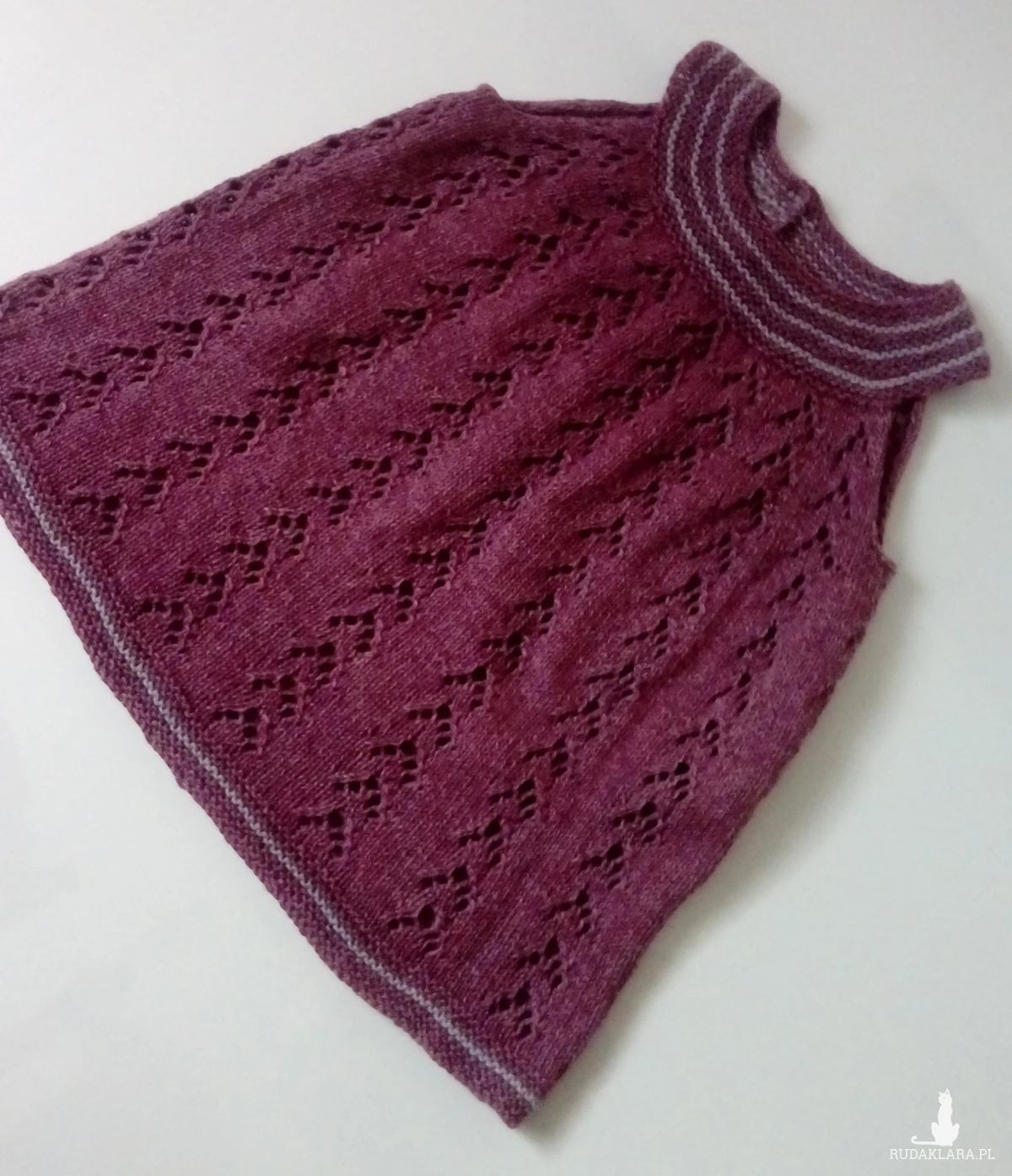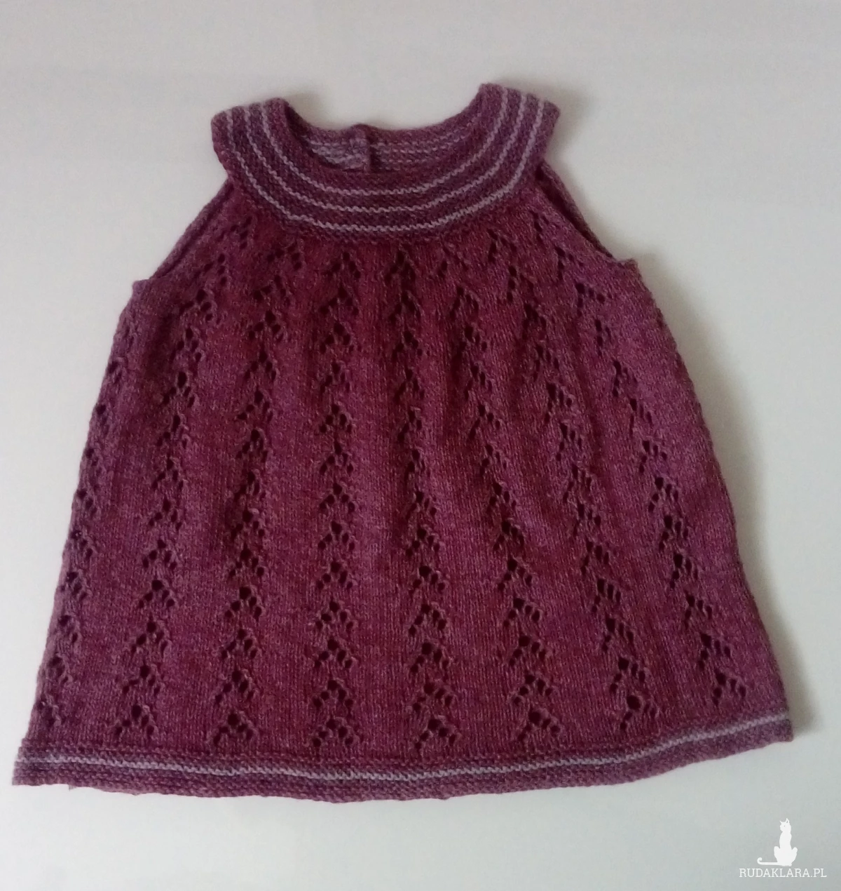 Sukienka wykonana ręcznie na drutach z włóczki akrylowej. Bardzo wygodna, z tyłu zapinana na dwa guziczki.