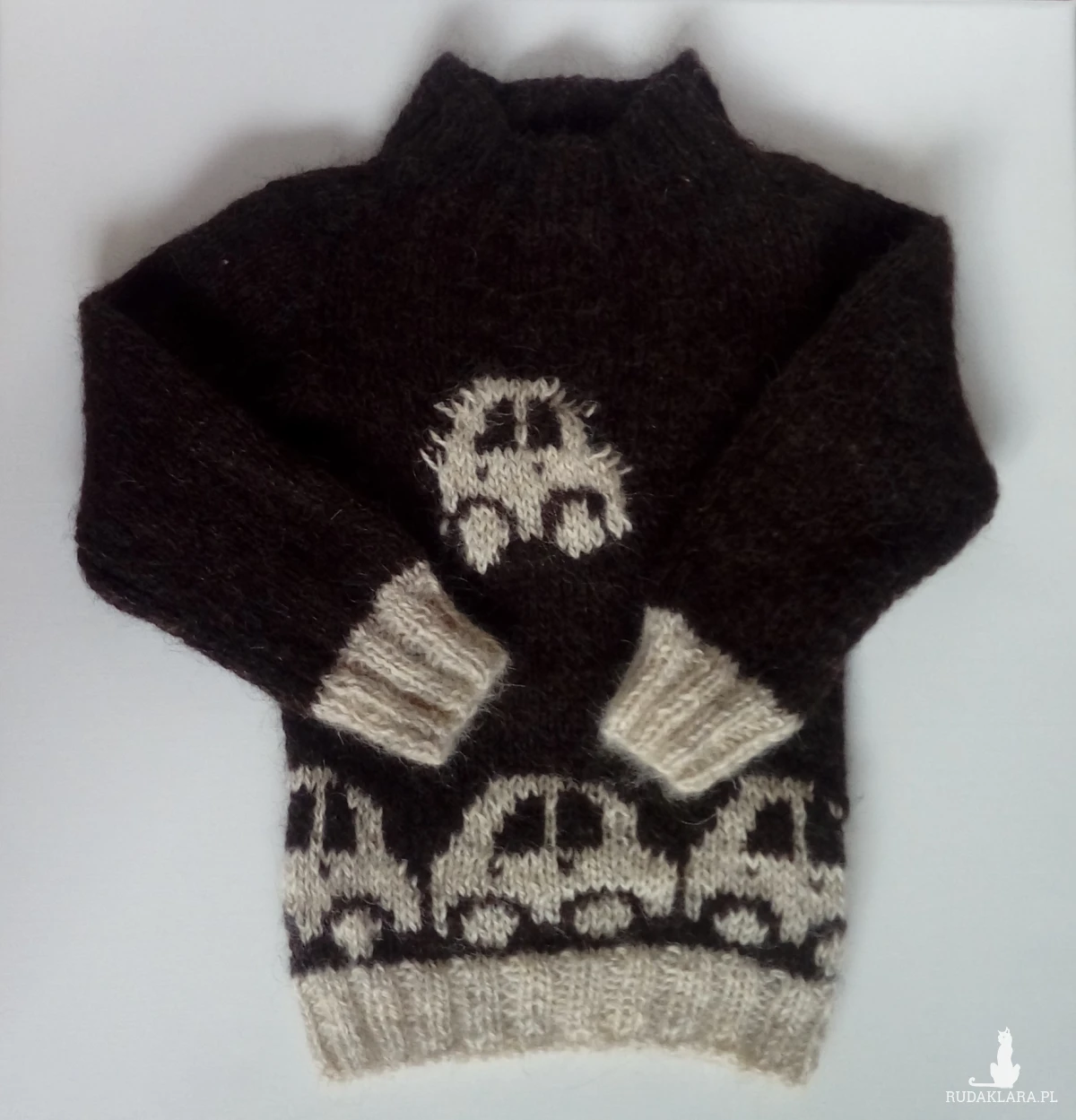 Wyjątkowy sweterek półgolf wykonany ręcznie na drutach z