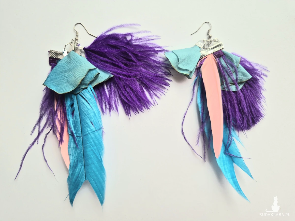 ręcznie robione kolczyki – długie pióra
