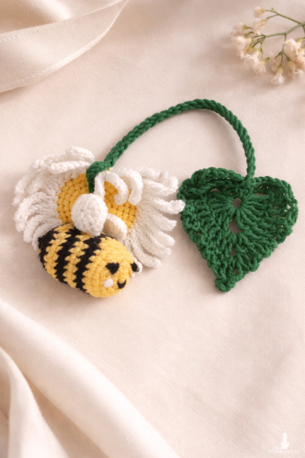Zawieszka wykonana na szydełku z włóczki bawełnianej i akrylowej.