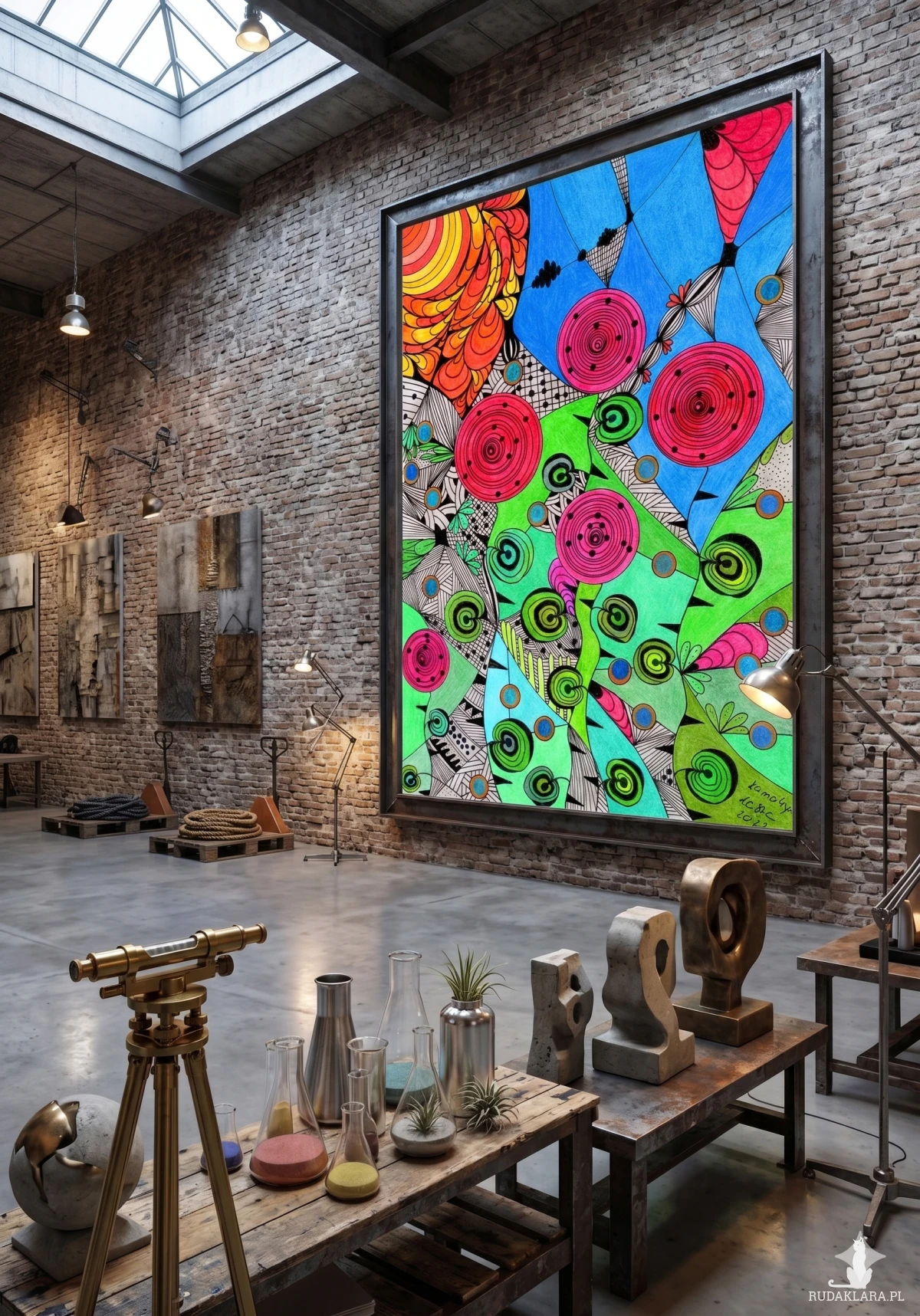 Ten rysunek jest wizualnym świadectwem nieokiełznanej, życiowej siły, przełamywania ograniczeń oraz wyrażania witalności w najczystszej formie.