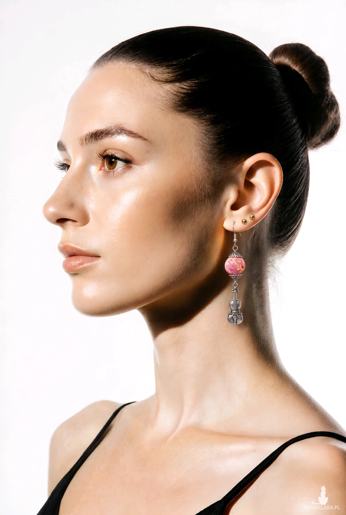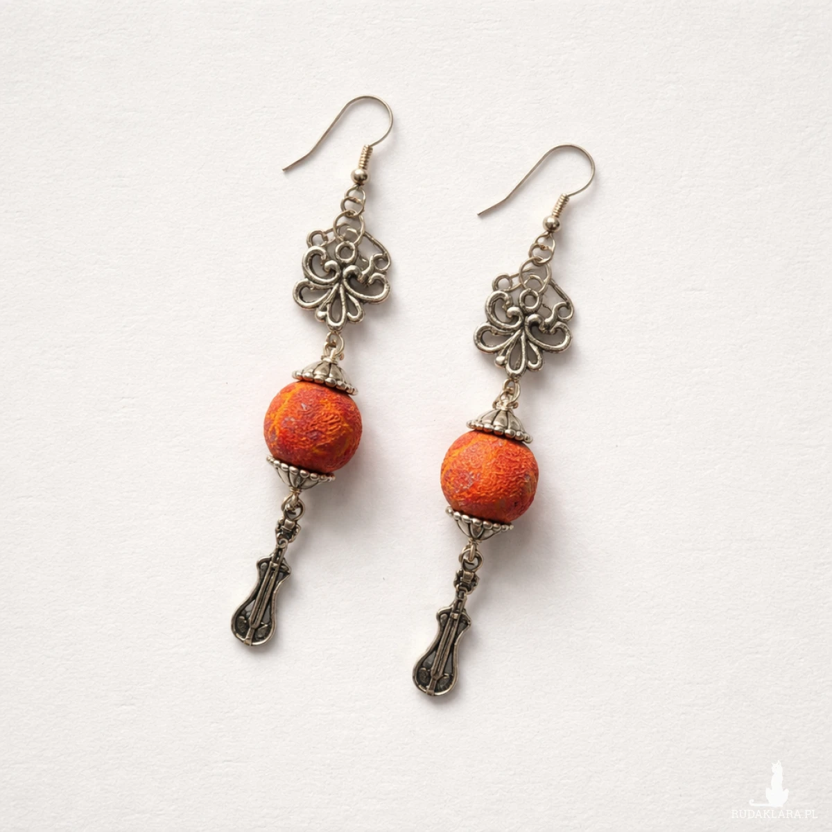 Klipsy z minerałami koral z gitarą polecam lekkie,box z1