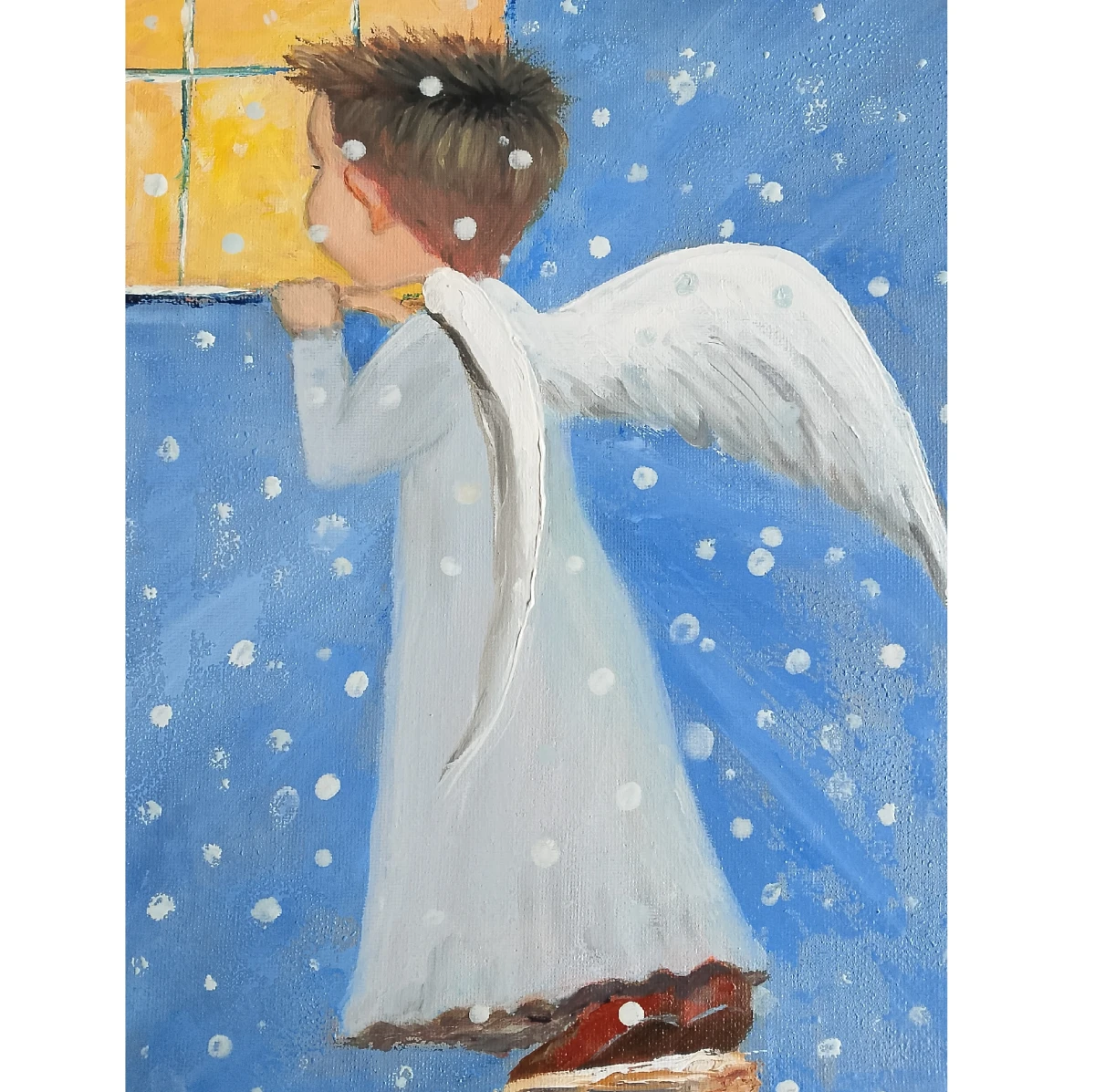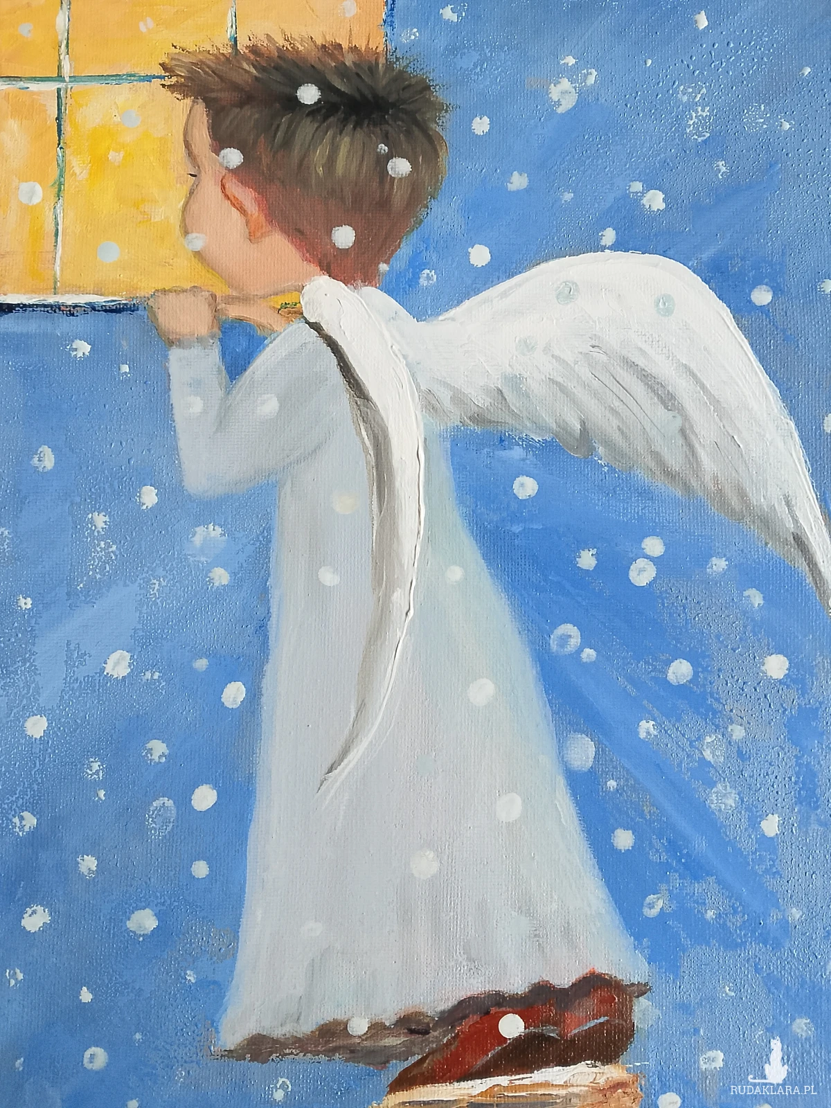 Aniołek Chłopczyk - ręcznie malowany obraz olejny. Płótno na blejtramie. Obraz nie