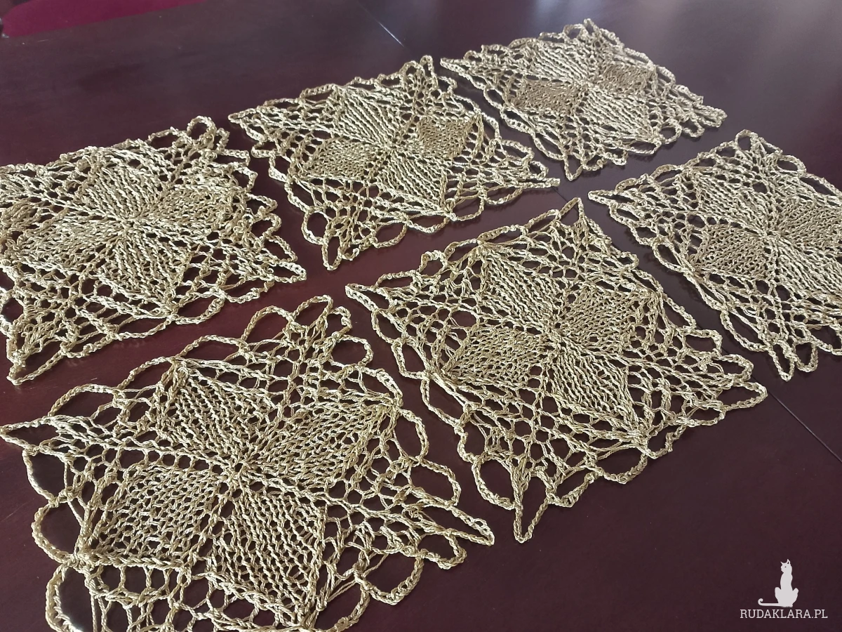 Komplet 6 szt serwetek podkładek wykonanych ręcznie na drutach w kolorze