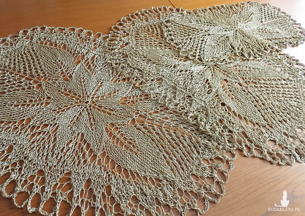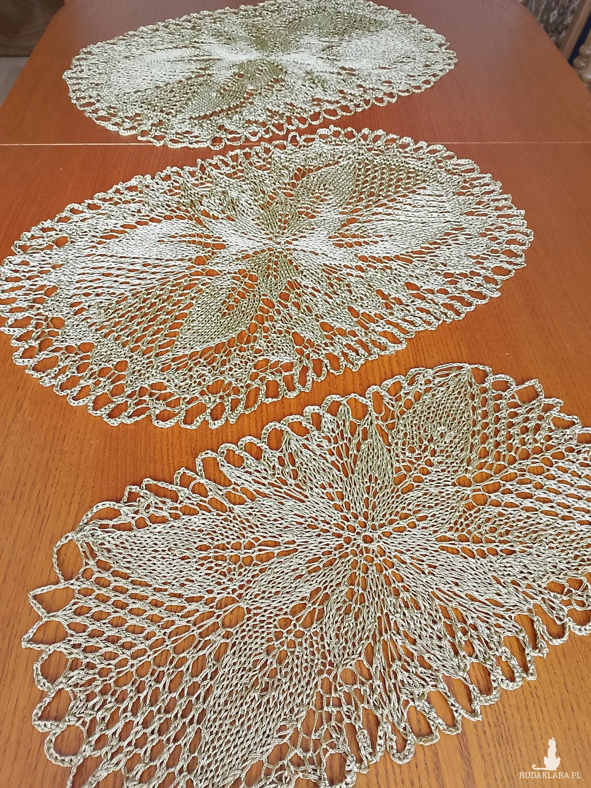 Komplet 3 szt owalnych serwetek wykonanych ręcznie na drutach w kolorze