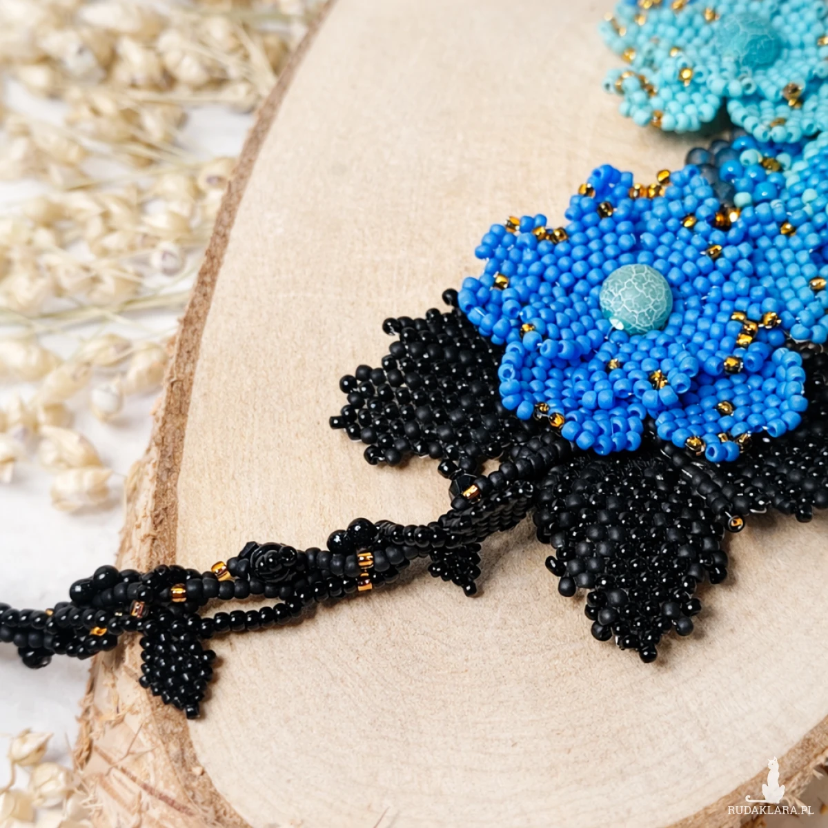 Naszyjnik wykonany został techniką haftu koralikowego z wykorzystaniem wysokiej jakości koralików jubilerskich. Precyzja, symetria i perfekcyjne wykończenie sprawiają, że to biżuteria z segmentu premium handmade.