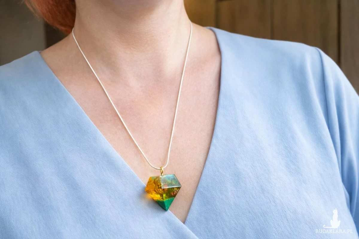 Odkryj wyjątkowy wisiorek handmade, w którym zamknęłam prawdziwe fragmenty lasu. Mech, kora i naturalne elementy tworzą niepowtarzalną kompozycję zatopioną w krystalicznej żywicy.