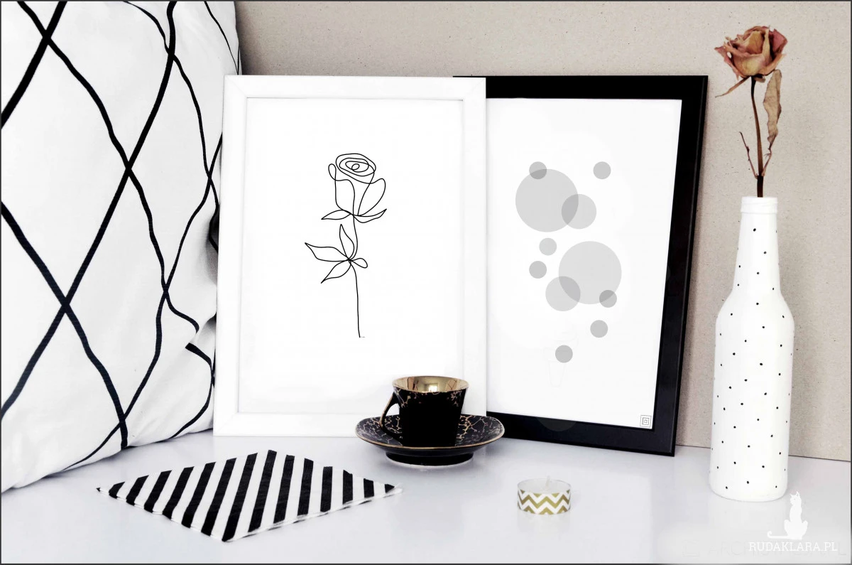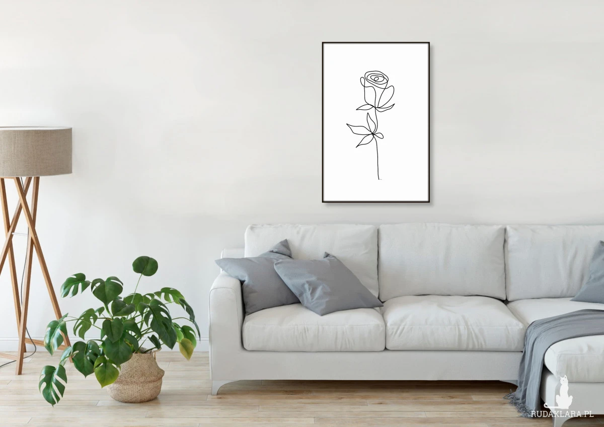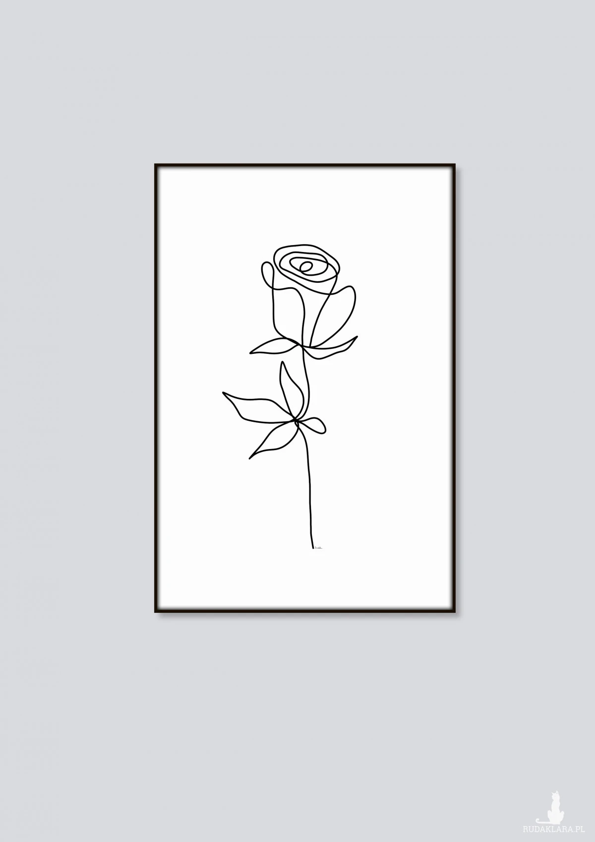 Autorska, sygnowana grafika "Minimalistyczna róża" do oprawienia jako obraz lub do innego wykorzystania, np. jako wzór do tapety.