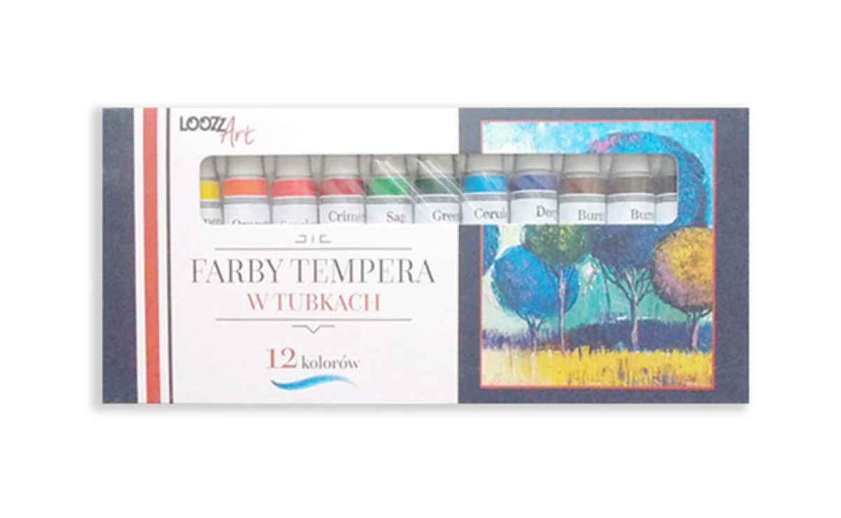 Komplet farb temperowych, 12 kolorów w tubkach 12 ml. Marka "Loozz Art".