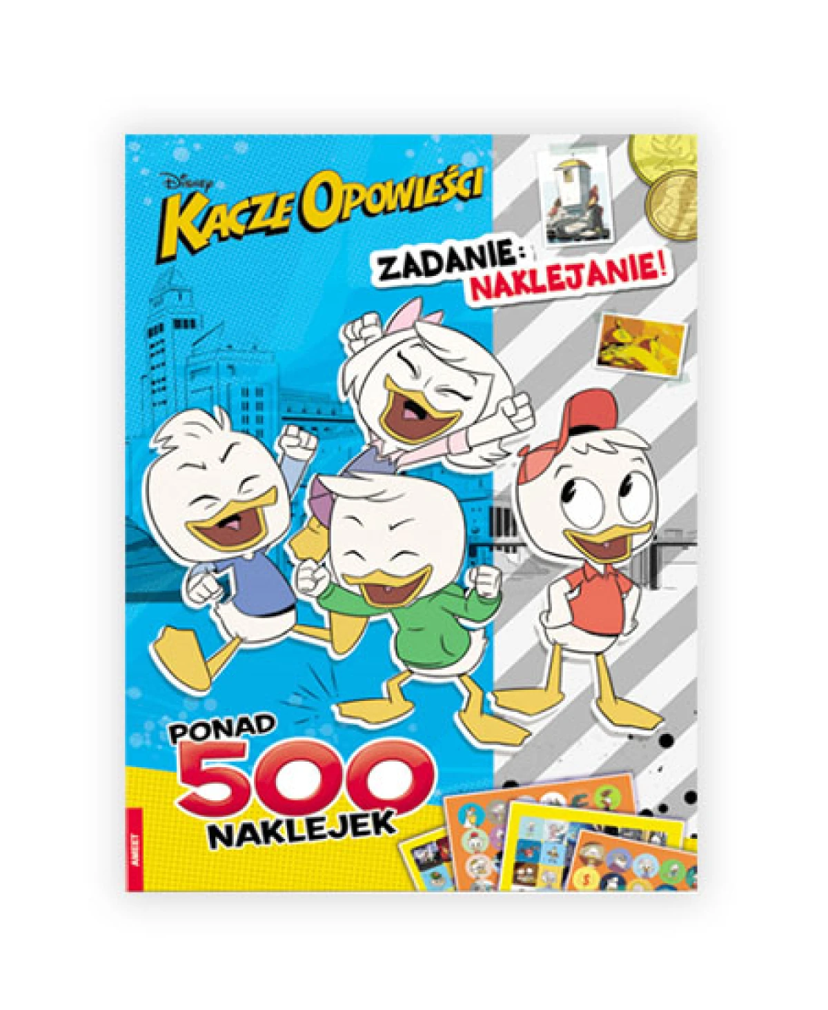 Nowa książka dla dzieci pt. " Kacze opowieści. Zadanie naklejanie: ponad 500 naklejek". Kolorowe 16 strony, zawiera łamigłówki oraz naklejki, format zbliżony do A4.