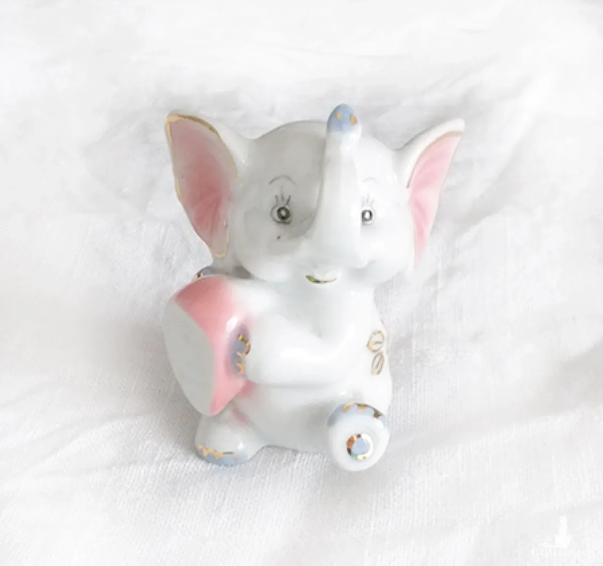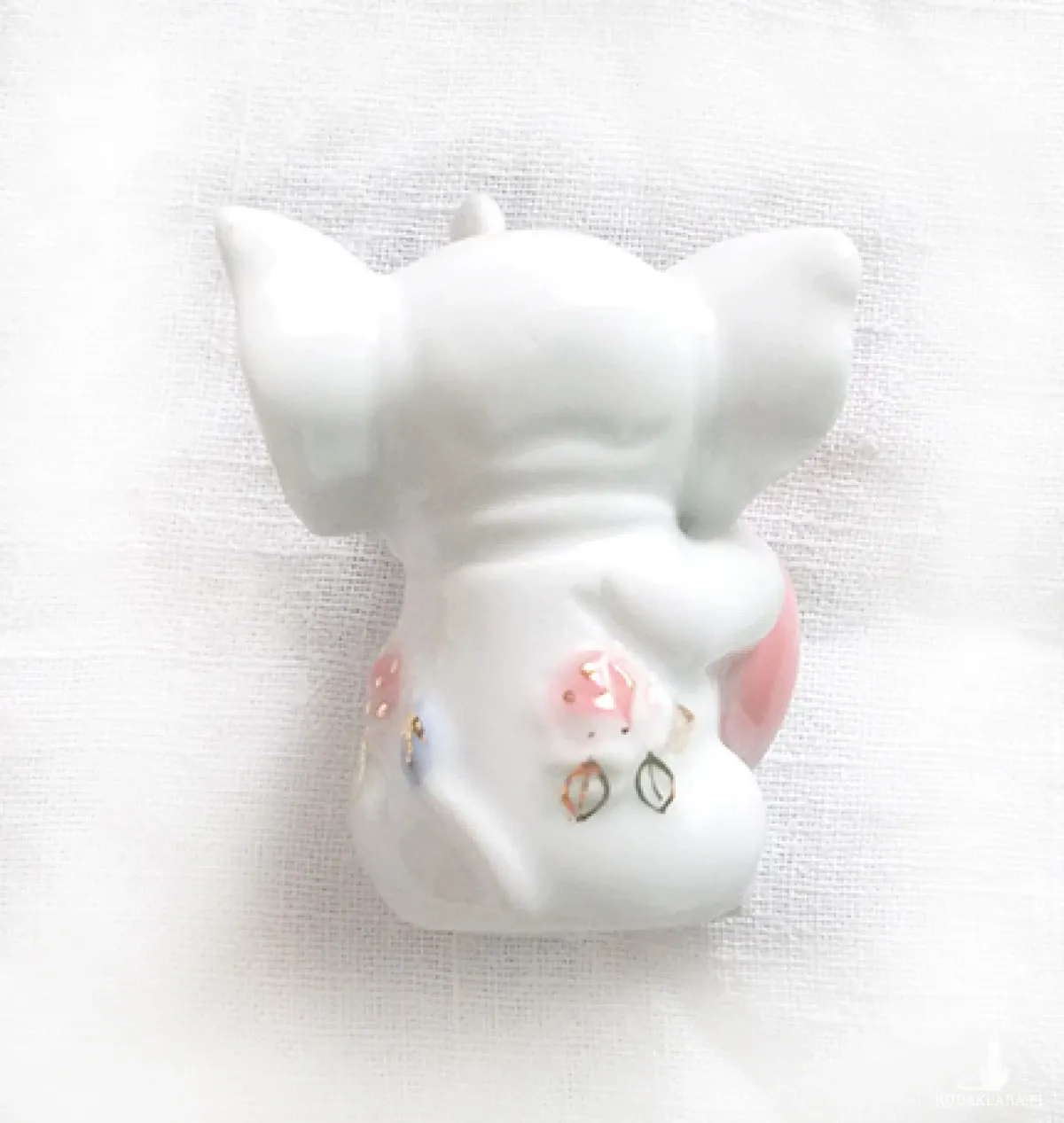 Ozdobny słoń z porcelany. Dekoracja na meble, komodę, szafkę, biurko itp. Wymiary wysokość ok 7 cm, szerokość ok. 6 cm. Przedmiot vintage lata 90 XX w. Stan bdb.
