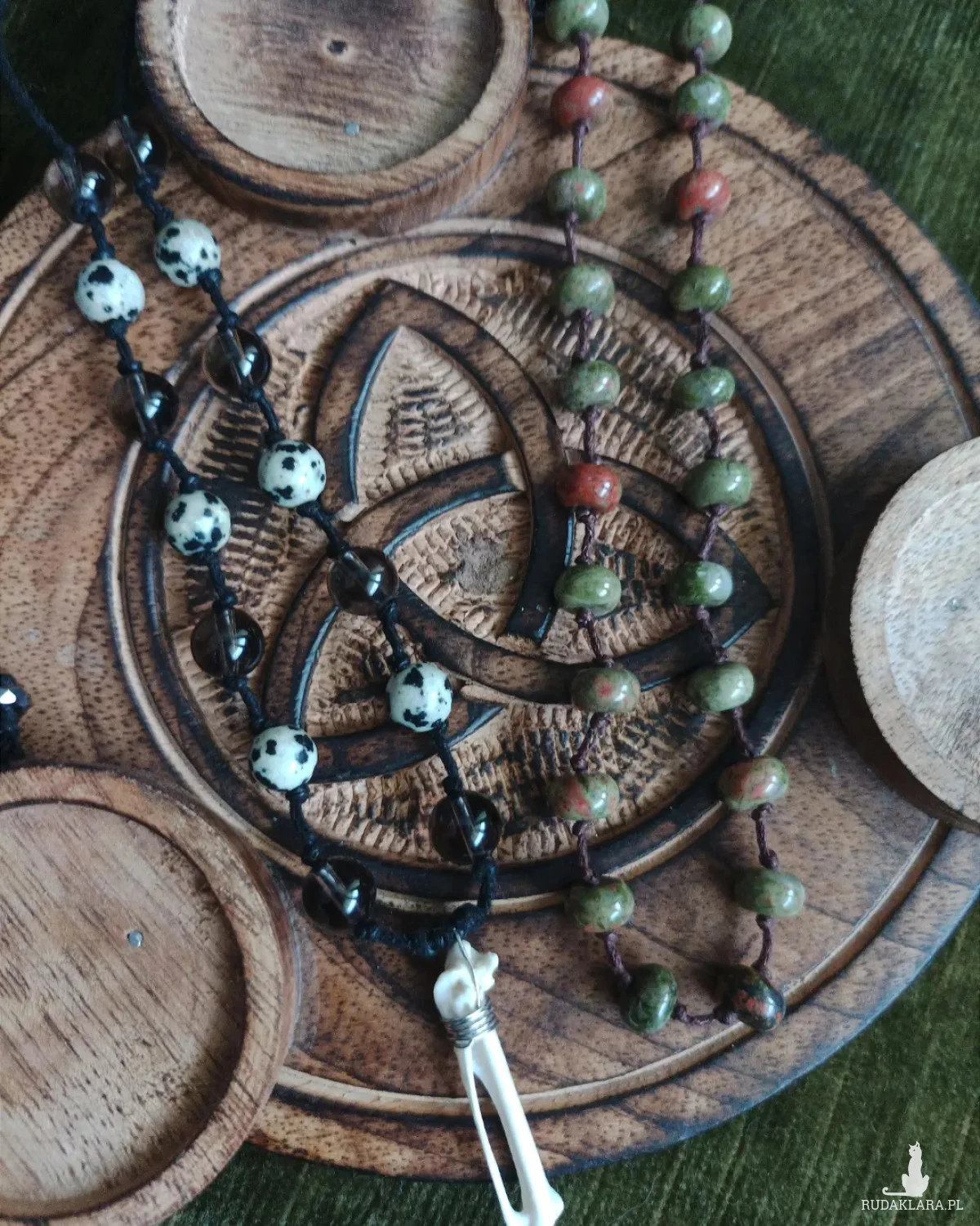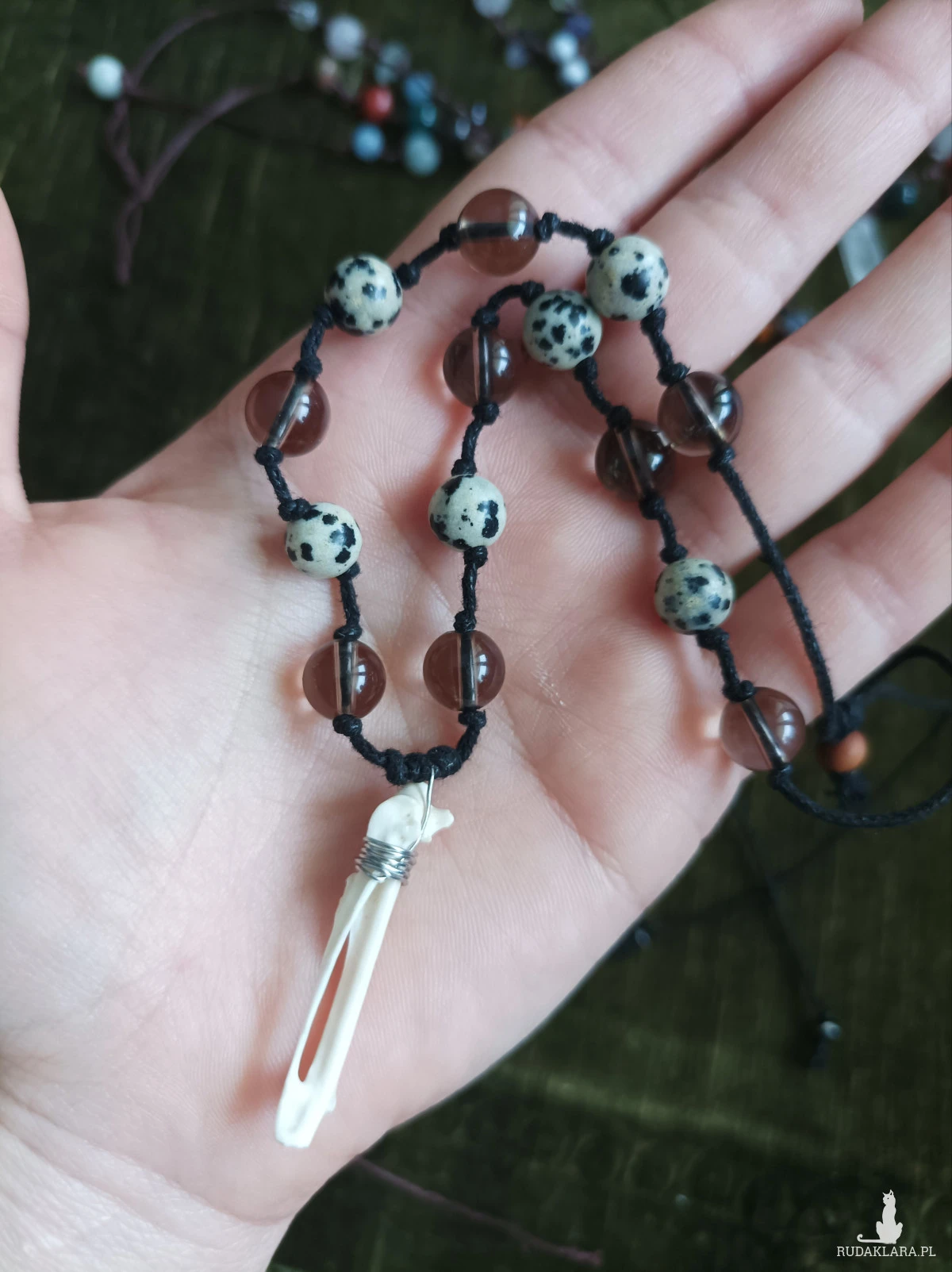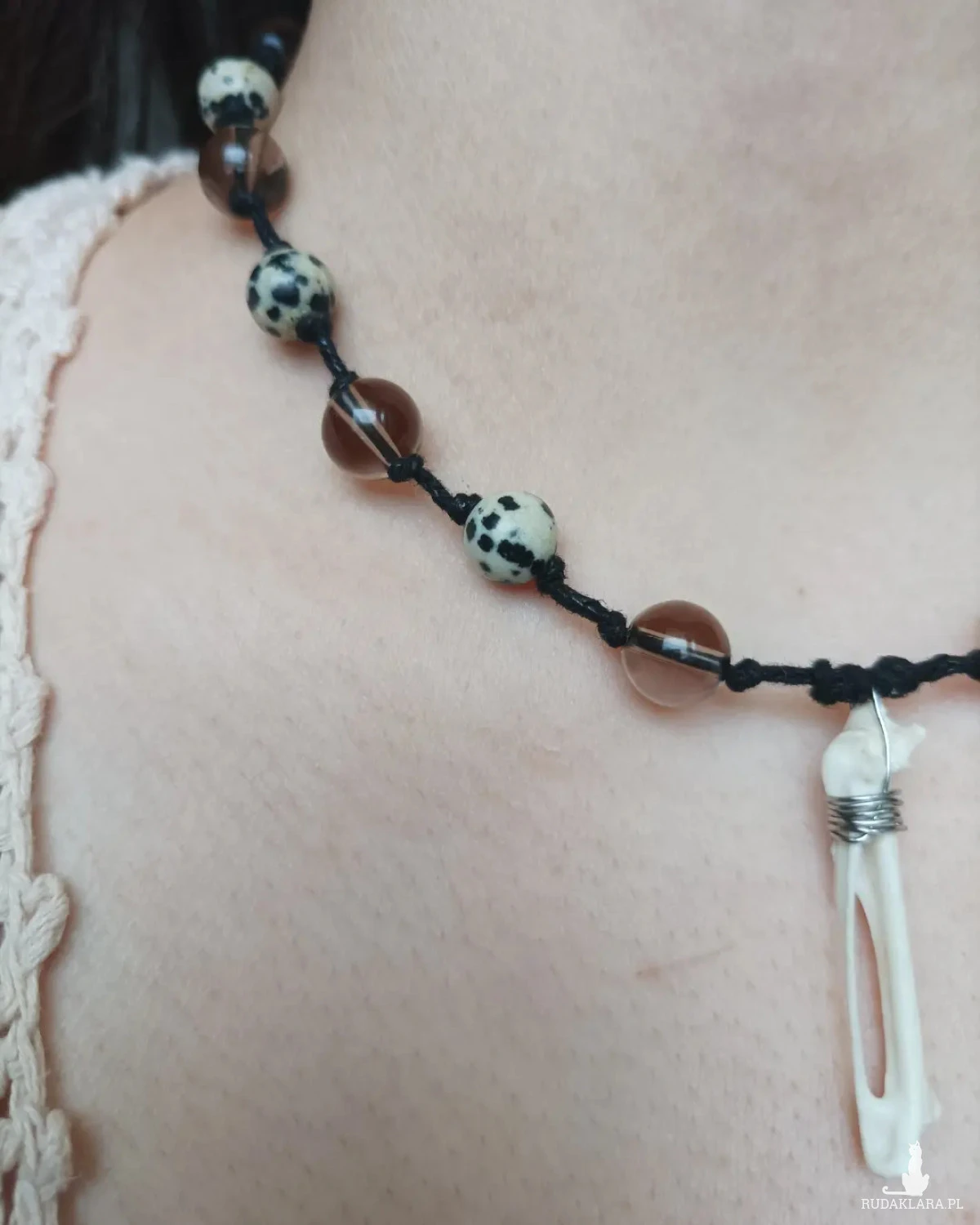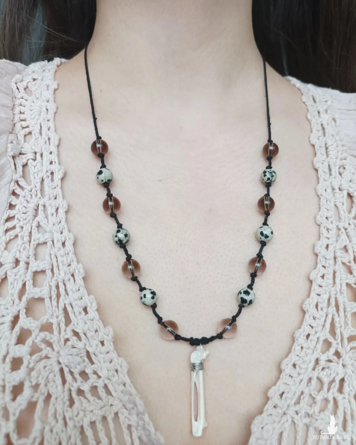 Naszyjnik regulowany co całej długości, z Kwarcem dymnym i Jaspisem dalmatyńskim z zawieszka z kości ?