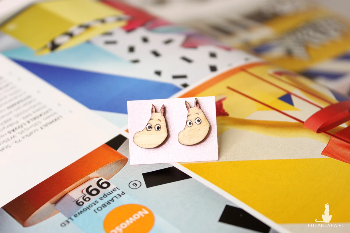 Drewniane kolczyki sztyfty na walentynki w zielonym kolorze #muminek #muminki.