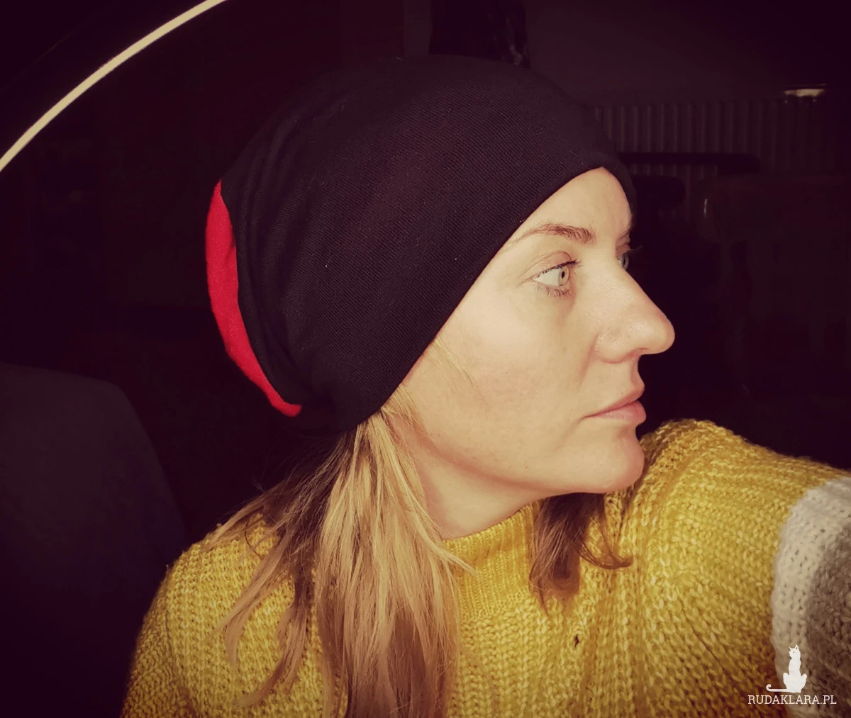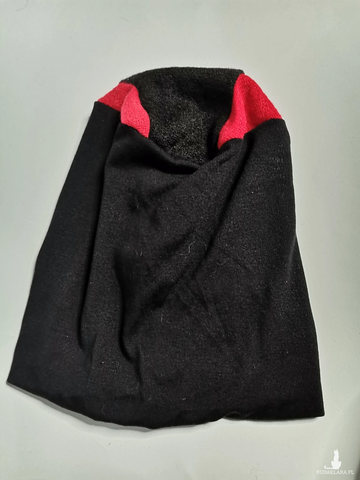 Czapka czarno czerwona dobra na codzienne noszenie na podszewce rozmiar uniwersalny box w1