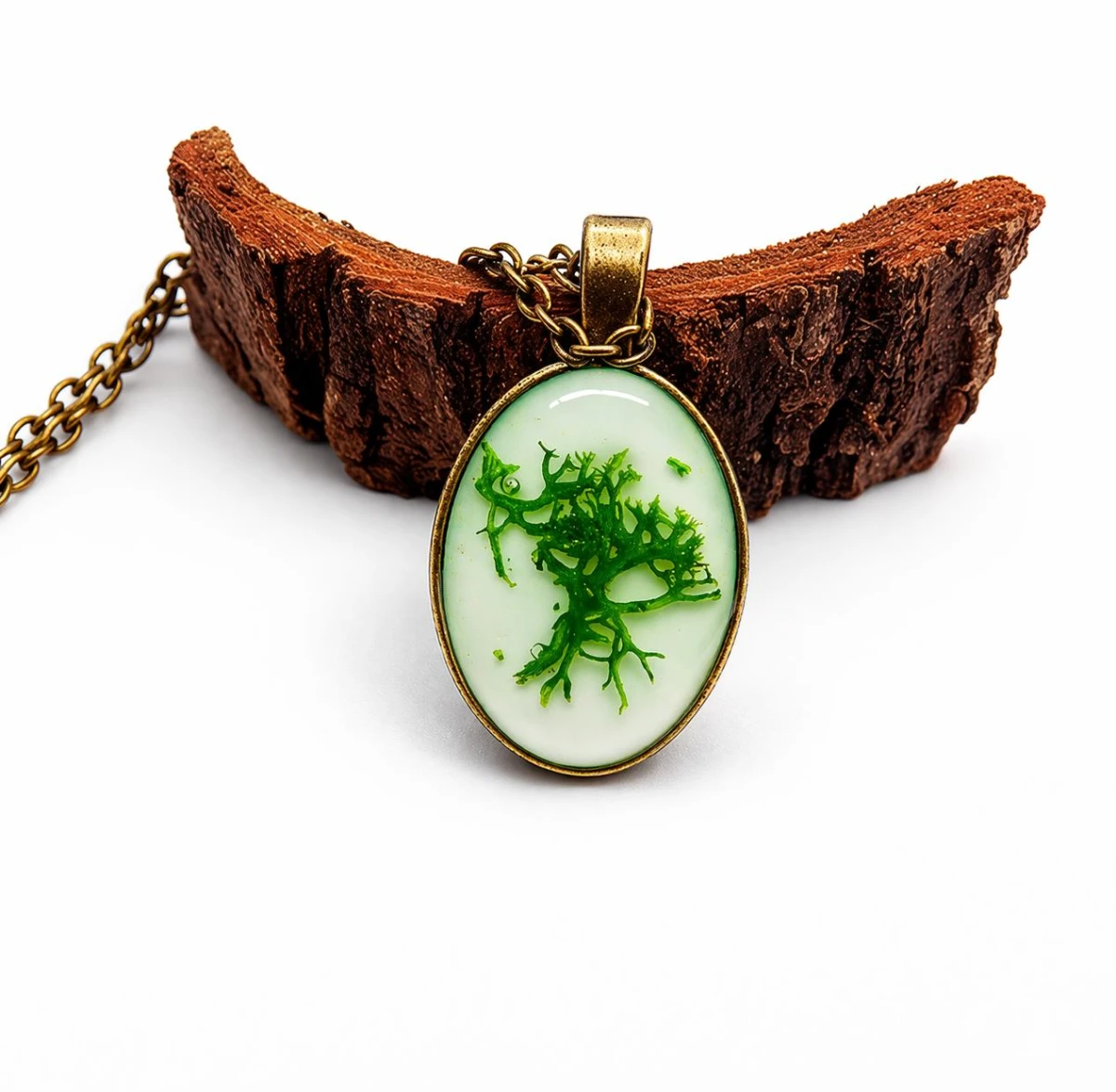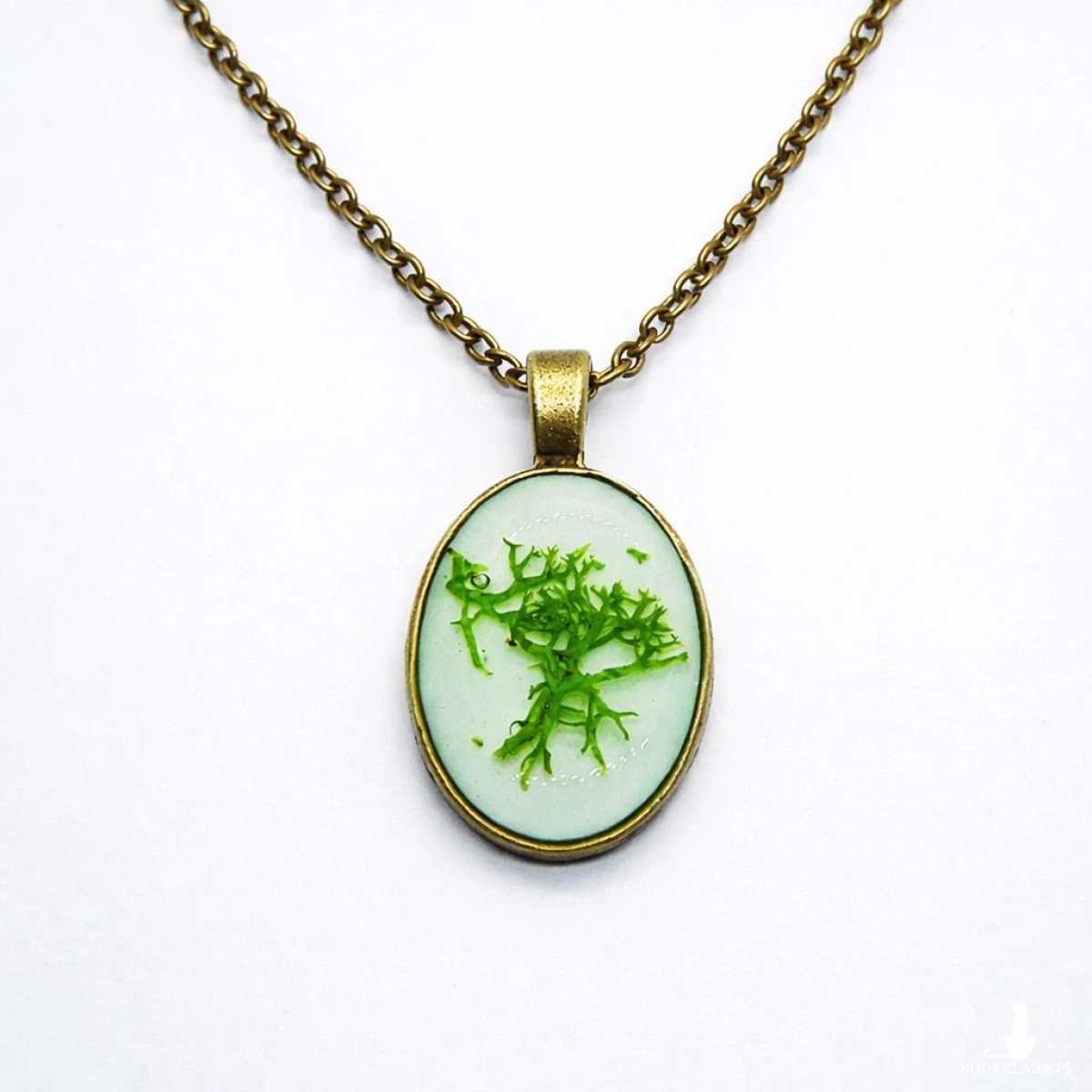 Wisior z mchem to doskonały wybór dla osób ceniących naturę i oryginalne dodatki. Sprawdzi się jako subtelny prezent dla bliskiej osoby.