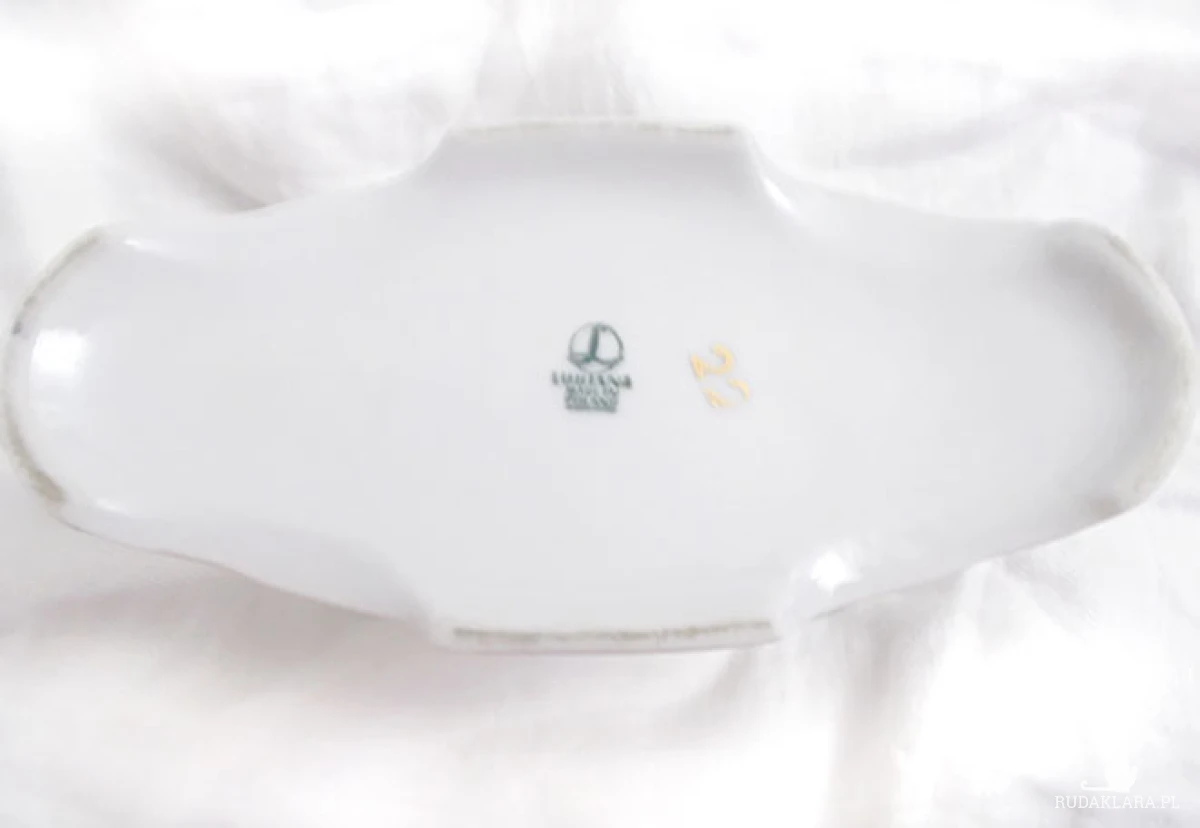 Przedmiot vintage z czasów PRL, koniec lat 80 XX w.  Biały świecznik z geometrycznym wzorem. Wymiary: wysokość 10,5 cm, szerokość 15,5 cm. Świecznik posiada drobne skazy fabryczne typu kropki, typowe dla tego typu przedmiotów. Producent "Lubiana". Ogólny stan bdb.