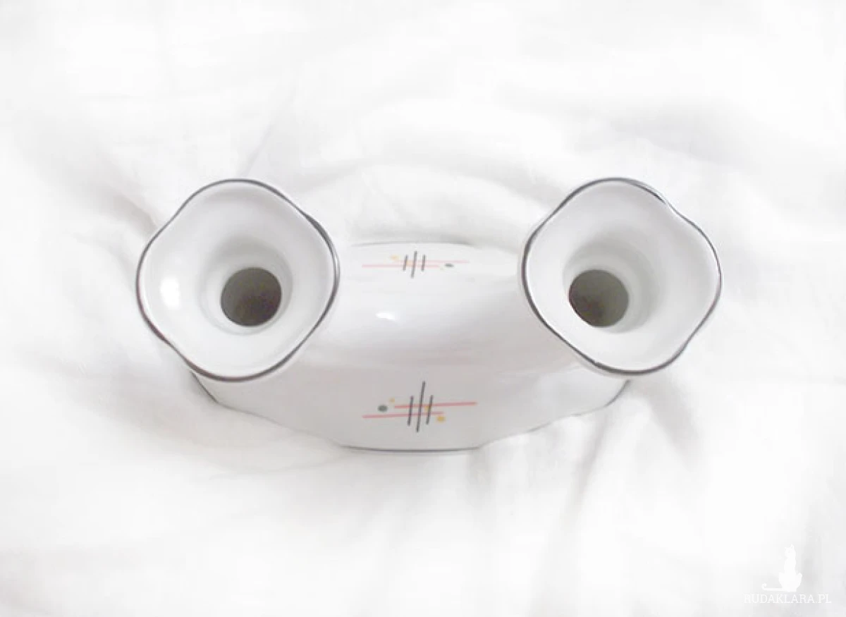 vintage ceramika prl, prl świecznik retro, ceramiczny świecznik, prl ceramika, lubiana świecznik, biały świecznik na dwie świeczki, mały świecznik na stół