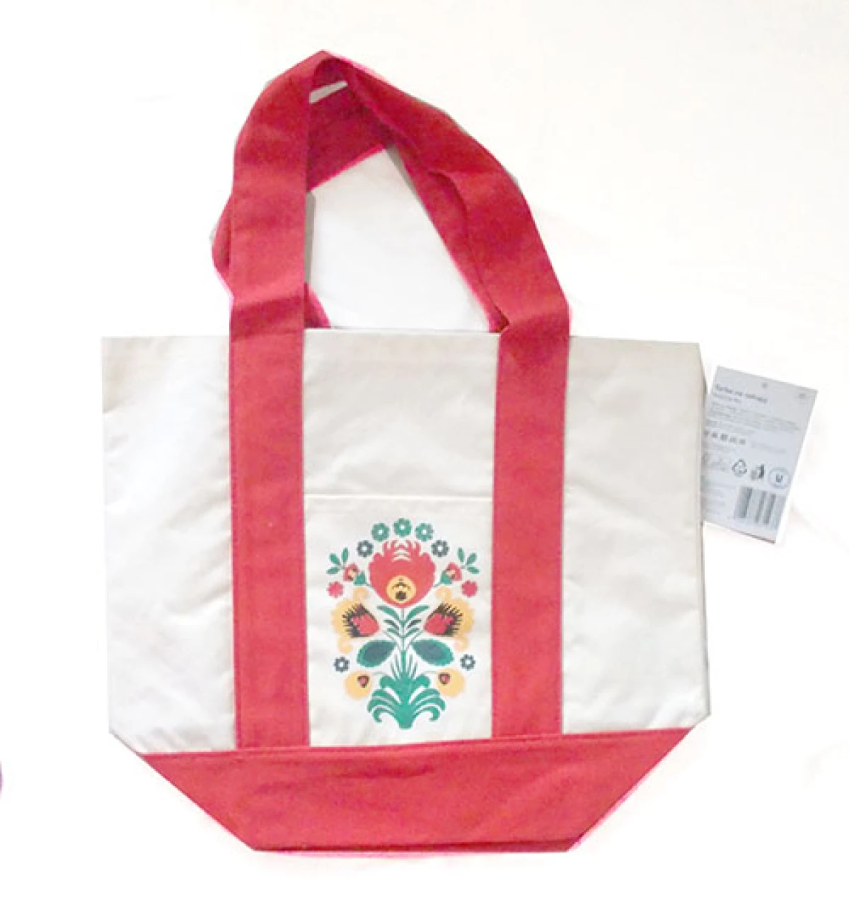 Nowa, płócienna torba z nadrukiem, wzór w stylu folkowym, zewnętrzna kieszonka Praktyczna eko torba na zakupy, drobiazgi itp. Wymiary około: wysokość 27 cm, szerokość 31 cm, uszy 15 cm.