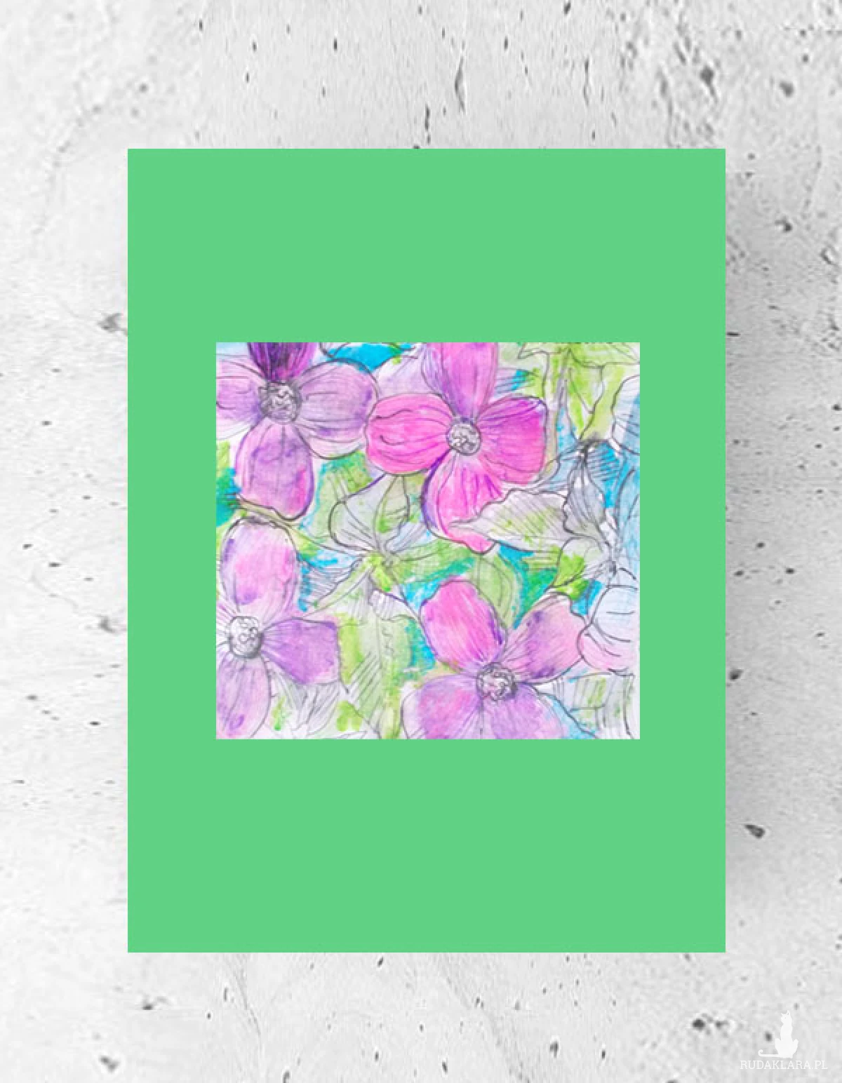 kwiaty rysunek A4, kolorowy obrazek z kwiatami, kwiatki obrazek 21x30, ogród rysunek A4, łąka obrazek do sypialni, różowo zielony plakat A4, botaniczny obrazek do domu