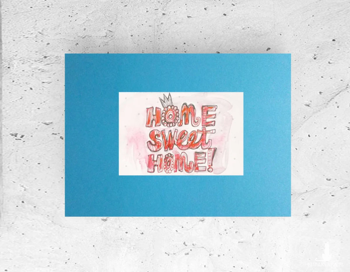 Obrazek z napisami na ciemnoniebieskim kartoniku A4. Grafikę wystarczy tylko oprawić w ramkę 21x30 cm.. Tekst w języku angielskim: "Home sweet home". Plakat na ścianę do sypialni, salonu, biura, pokoju młodzieżowego, jadalni, kuchni, przedpokoju, garderoby, kawiarni, restauracji, holu Grafika będzie pasowała do różnych stylizacji wnętrz: nowoczesnych, hygge, minimalistycznych, loftowych, mieszanych, skandynawskich, boho, eklektycznych, industrialnych. Przedmiot do dekoracji wnętrz.