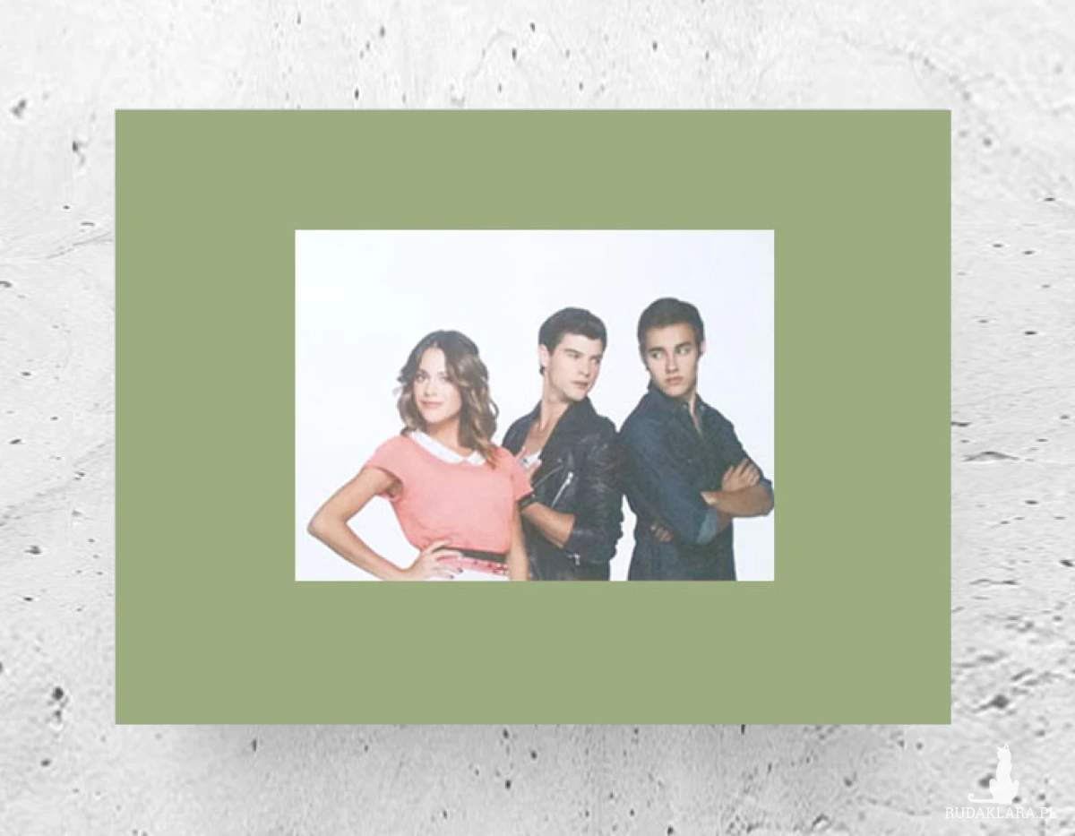 Nowy plakat z aktorami z filmu, serialu pt. "Violetta". Grafika na oliwkowym kartoniku A4. Poster na ścianę do pokoju nastolatki lub dziewczynki, salonu jadalni, sypialni, przedpokoju, garderoby, kuchni, holu, kawiarni, restauracji itp. Plakat wystarczy dać do ramki 21x30 cm.. Plakat będzie pasował do wnętrz urządzonych w stylu boho, nowoczesnym, loftowym, skandynawskim, mieszanym.