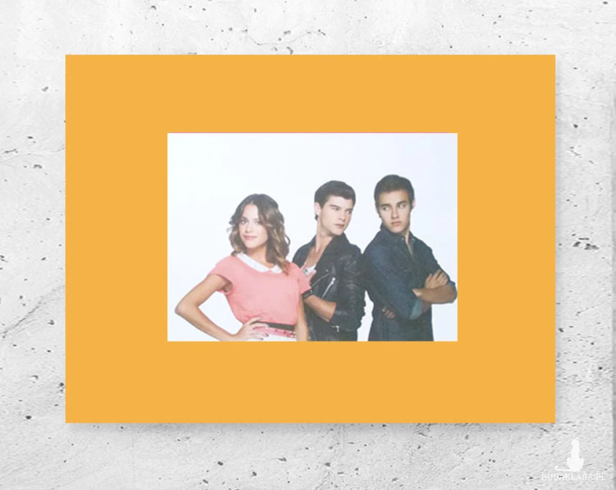Nowy plakat z aktorami z filmu, serialu pt. "Violetta". Kolorowy obrazek na pomarańczowym kartoniku A4. Grafika na ścianę do pokoju nastolatki, garderoby, jadalni, salonu, sypialni, przedpokoju, kuchni, holu, kawiarni, restauracji itp. Plakat wystarczy dać do ramki 21x30 cm.. Poster będzie pasował do wnętrz urządzonych w stylu boho, nowoczesnym, loftowym, mieszanym.