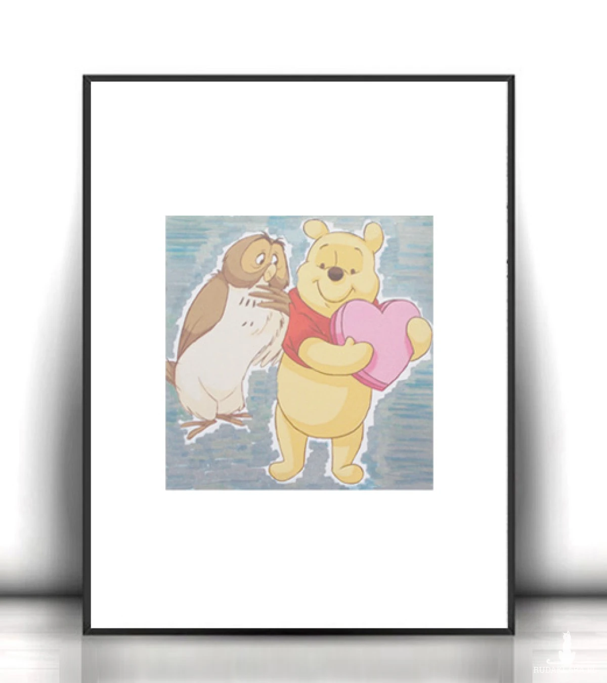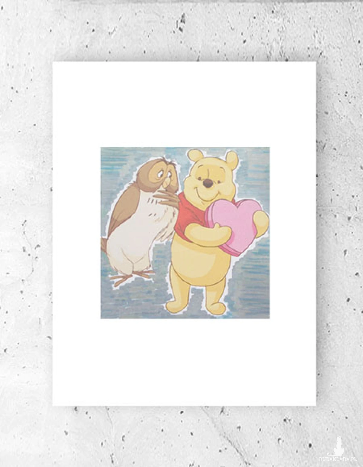 Nowy, kolorowy obrazek z Kubusiem Puchatkiem, lekko srebrzyste tło. Ilustracja na białym kartoniku w rozmiarze A4. Plakat na ścianę do dziecięcego pokoju, kuchni, jadalni, sypialni, żłobka, przedszkola, bawialni, klubu malucha itp. Poster wystarczy dać do ramki w rozmiarze 21 x 30 cm..