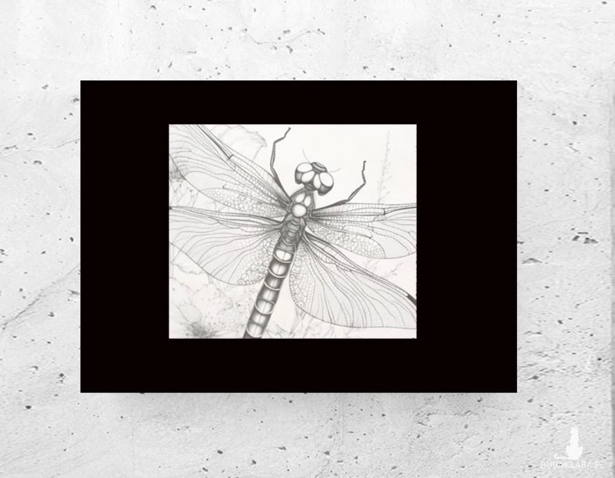 Nowy plakat w stylu retro. Czarno biały obrazek z ważką na czarnym kartoniku A4. Dekoracja na ścianę do biura, salonu, gabinetu, sypialni, jadalni, przedpokoju, garderoby, kuchni, pokoju młodzieżowego, holu itp. Plakat wystarczy dać do ramki 21x30 cm.. Poster będzie pasował do wnętrz urządzonych w stylu nowoczesnym, skandynawskim, minimalistycznym, hygge, mieszanym.