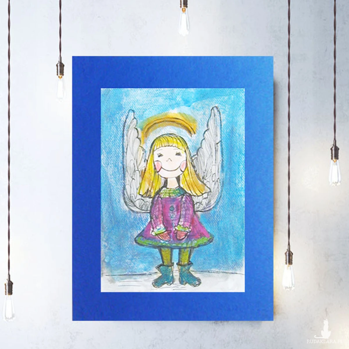 aniołek obrazek A4, akwarela z aniołkiem, aniołek rysunek 21x30, ręcznie malowany obraz z aniołkiem, anioł dekoracja na ścianę