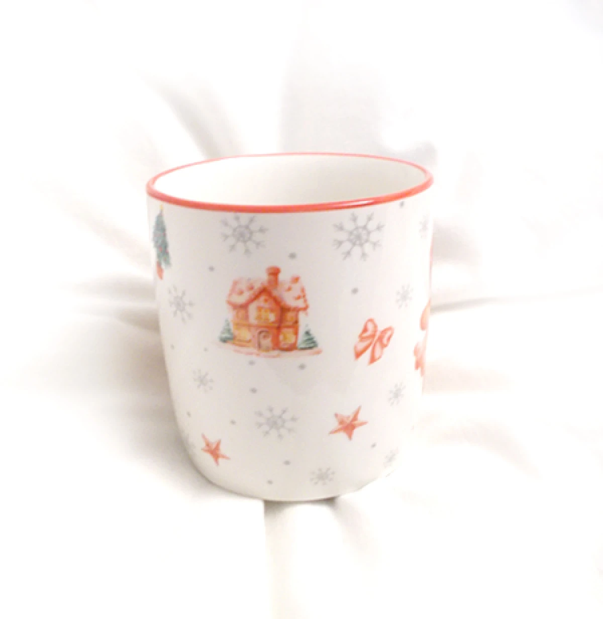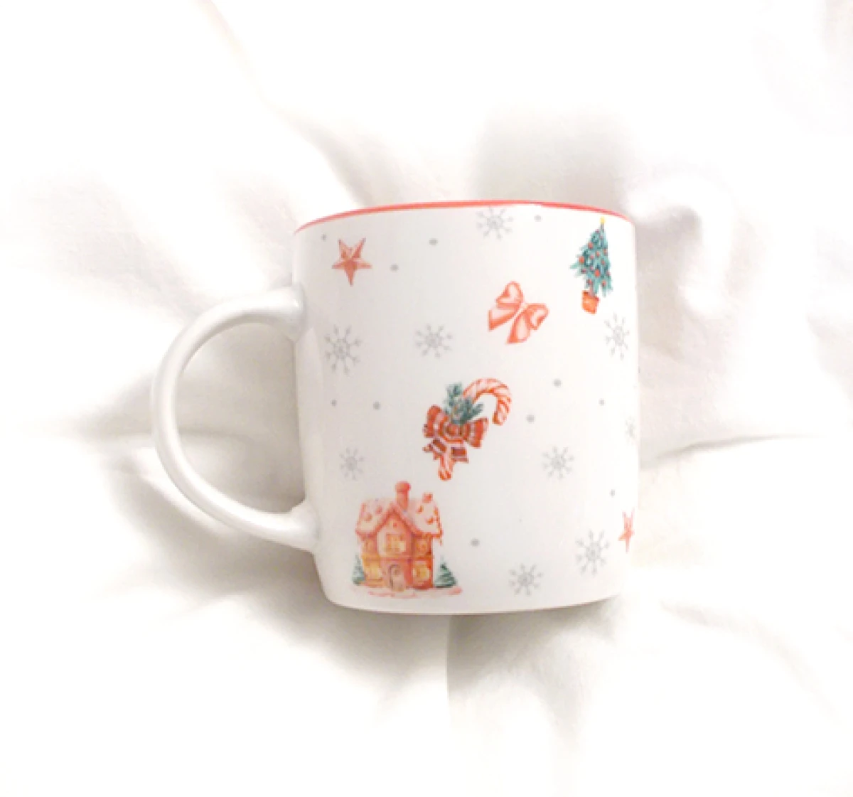 Nowy, oryginalny kubeczek w świąteczne wzory i ciasteczko, materiał: porcelana, pojemność około 320 ml.