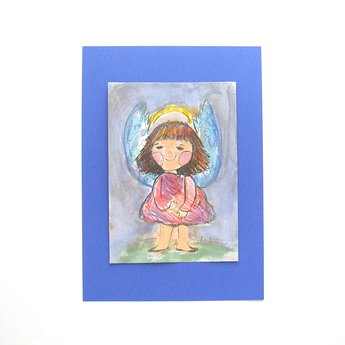 aniołek obrazek A4, akwarela z aniołkiem, aniołek rysunek 21x30, ręcznie malowany obraz z aniołkiem, anioł dekoracja na ścianę