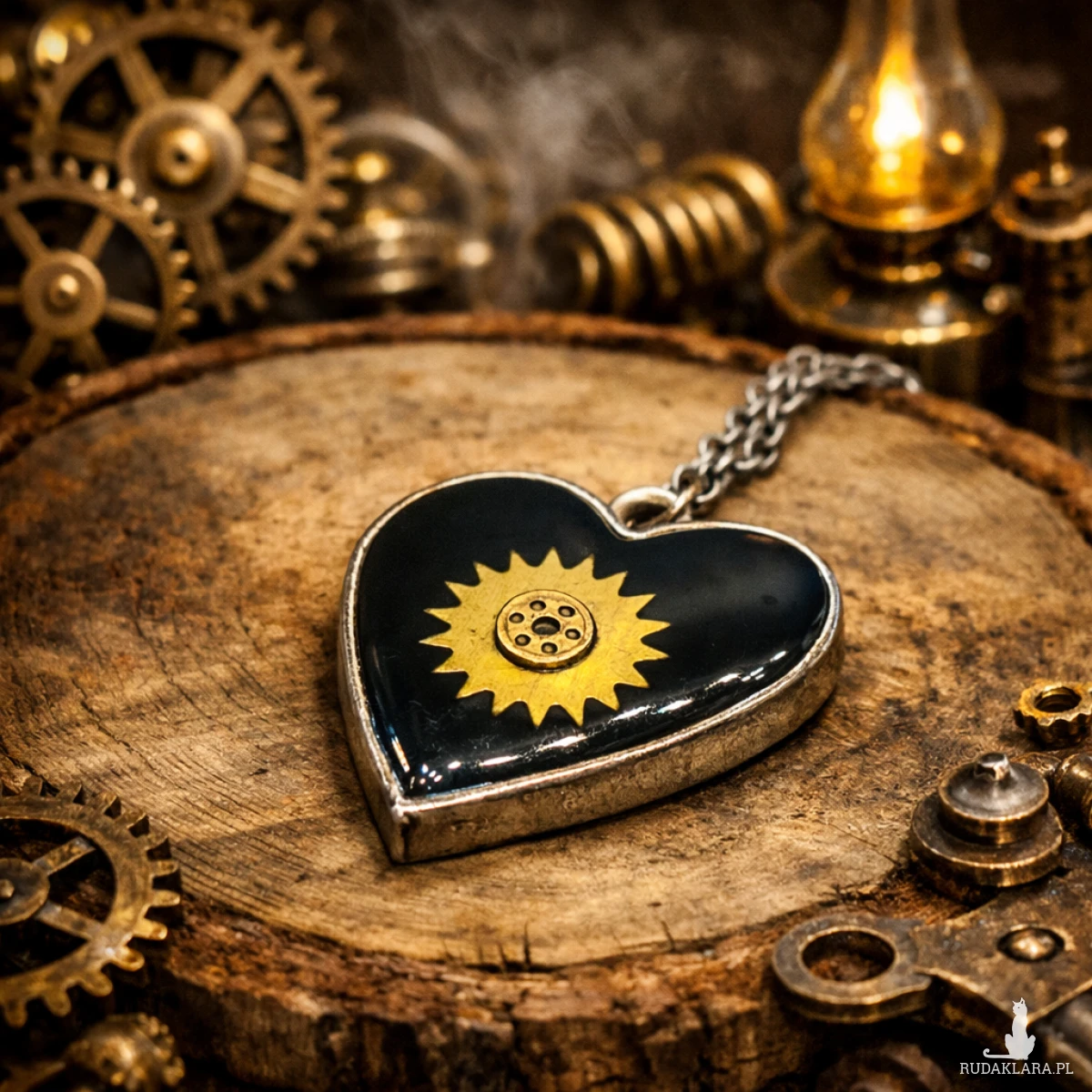 Ten ręcznie wykonany wisior w stylu steampunk to połączenie sztuki rękodzielniczej i inspiracji mechaniką dawnych zegarów.
