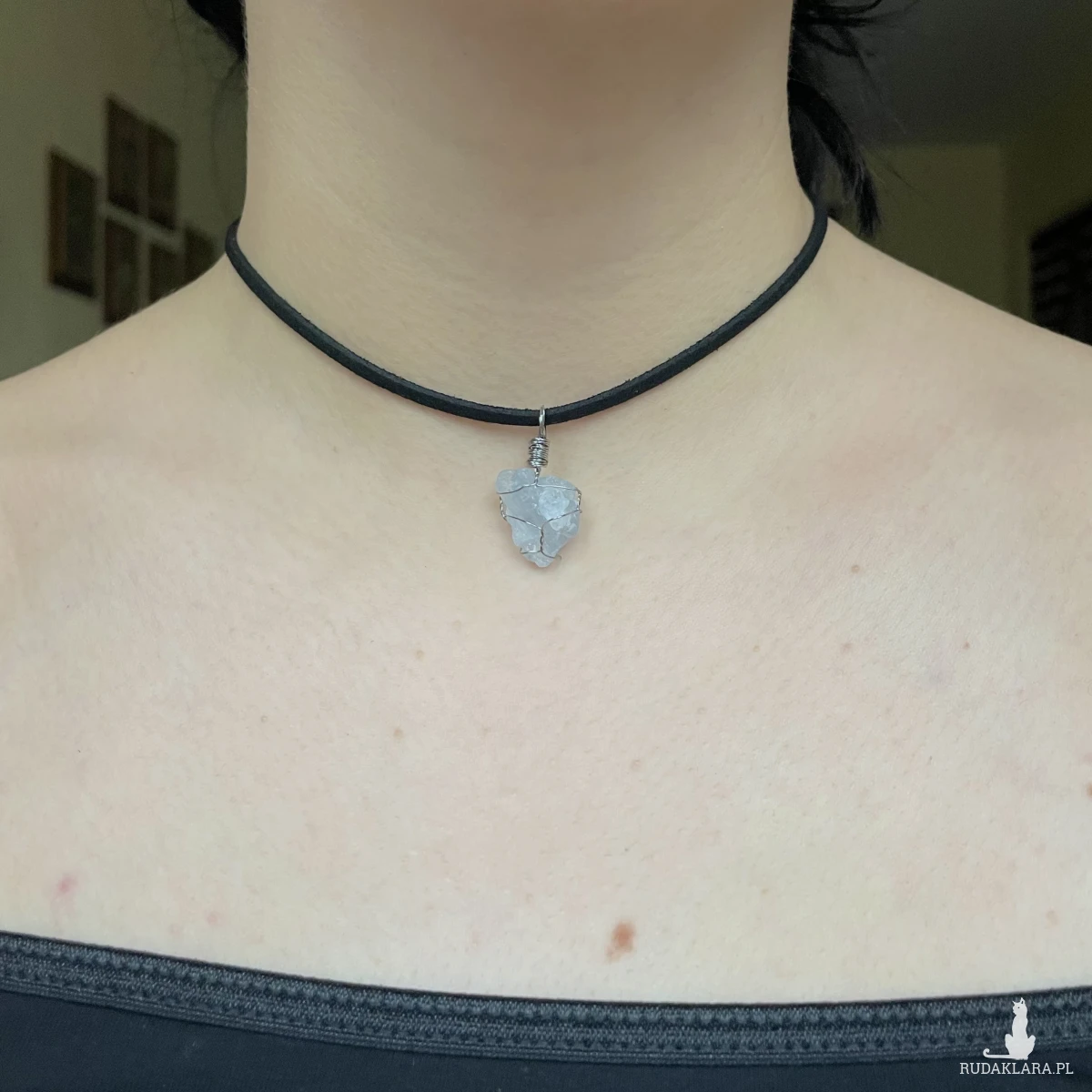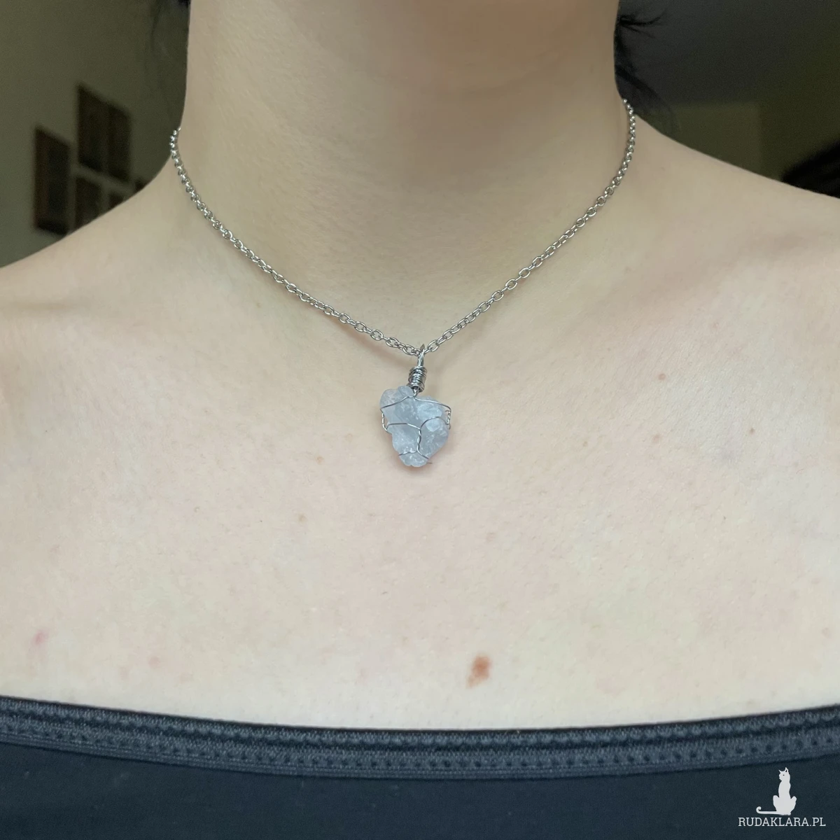 Naszyjnik ze stali chirurgicznej i celestynu do wyboru na łańcuszku, rzemyku lub różowej wstążce (proszę napisać w dodatkowych informacjach do zamówienia na czym ma być zawieszka) :))
