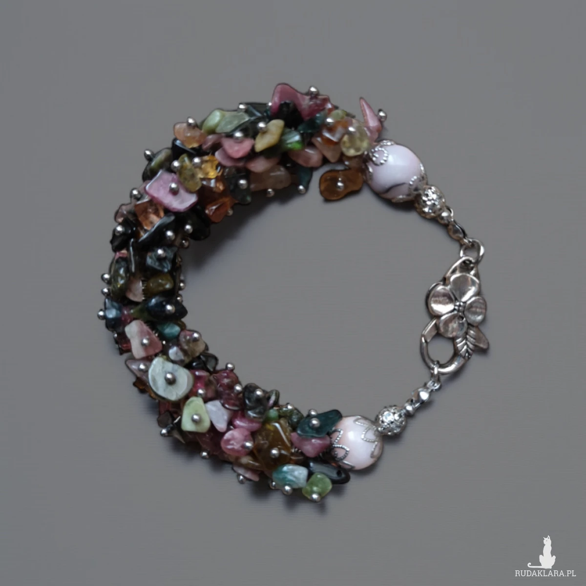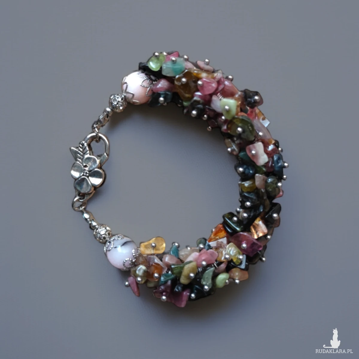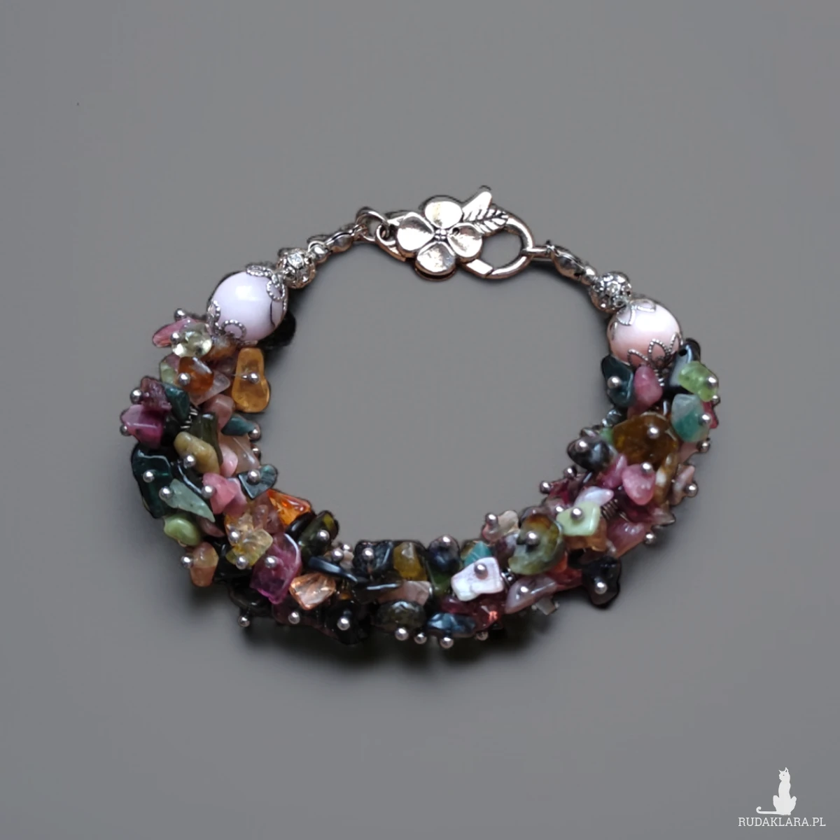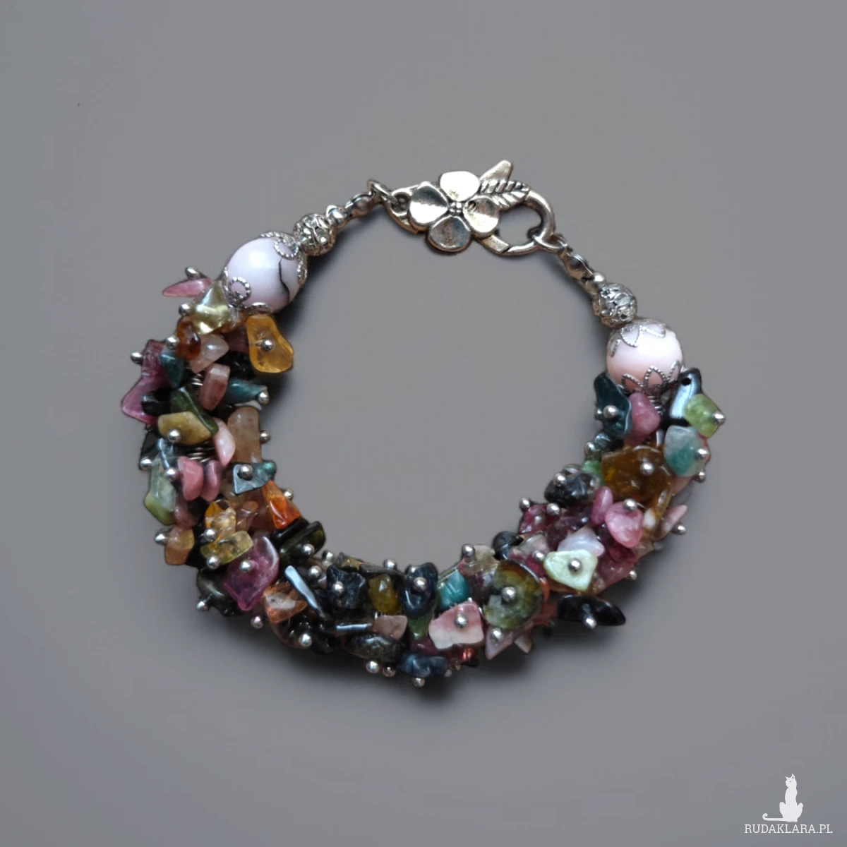 Piękna niespotykana bransoletka z wielobarwnych Turmalinów wykonana na mocnej lince jubilerskiej z solidnym zapięciem.