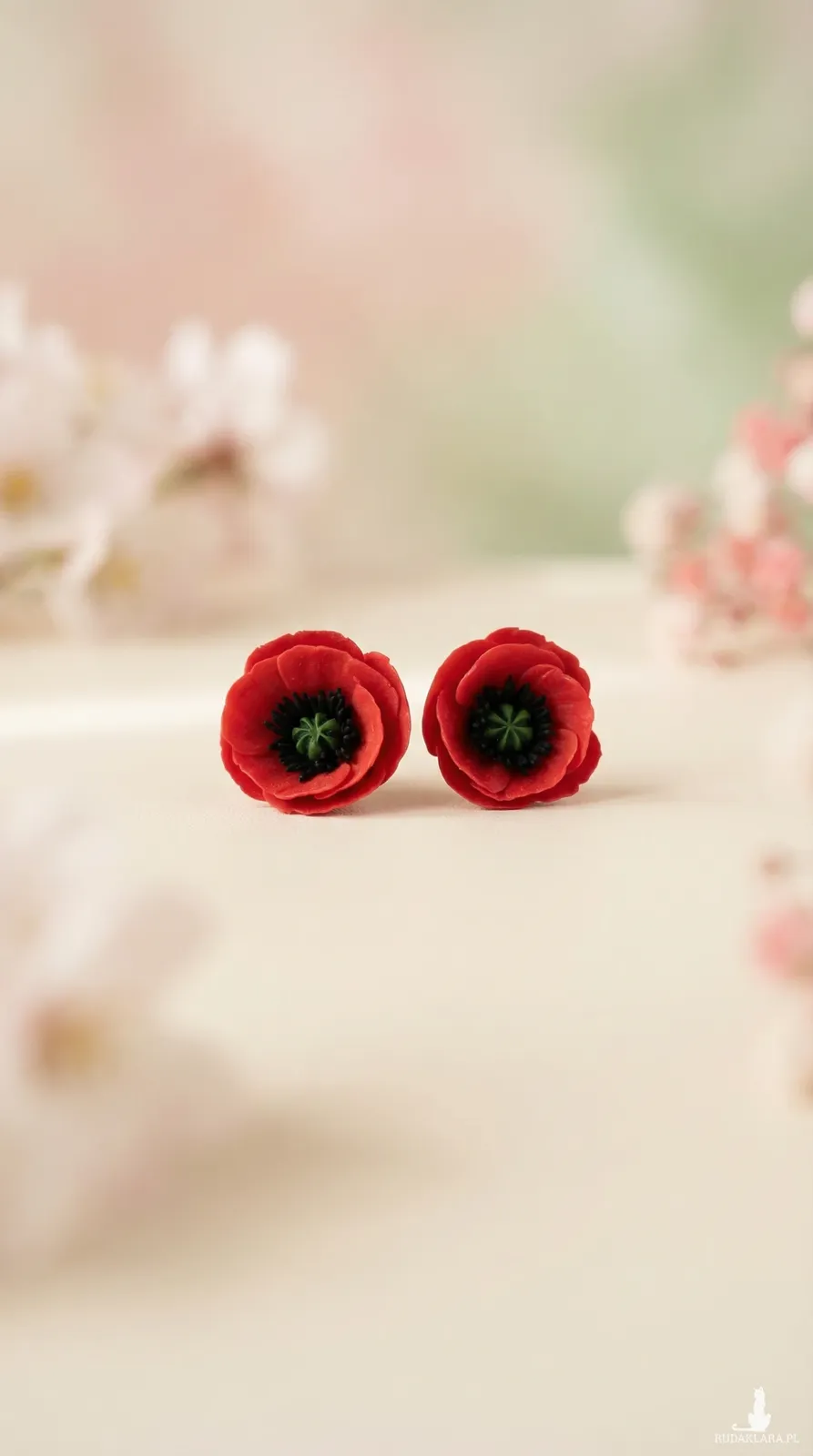 Kolczyki sztyfty z kwiatami maku, ręcznie wykonane z wysokiej jakości gliny polimerowej Fimo