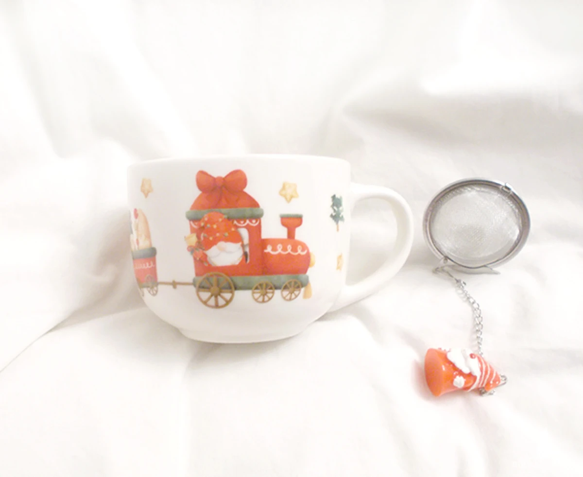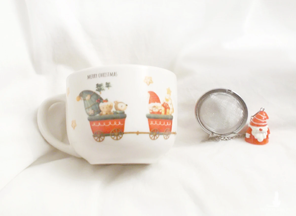 Nowy, ceramiczny kubek w bożonarodzeniowe wzory, kubek jest dość duży - pojemność około 400 ml, dołączony zaparzacz do herbaty z Mikołajem, marka "Smukee". Naczynie nadaje się do mycia w zmywarce