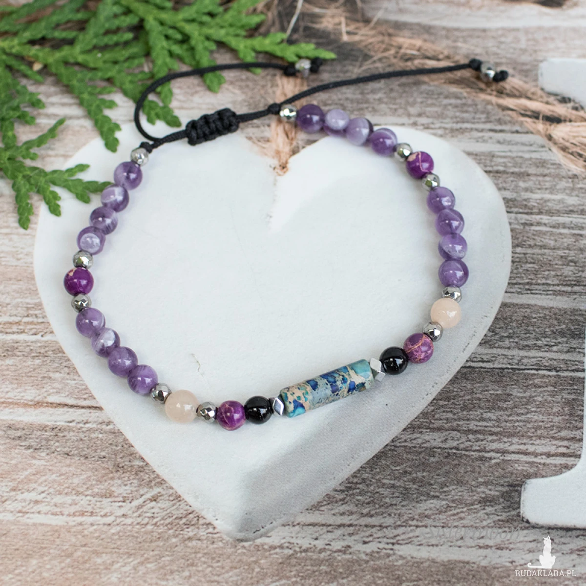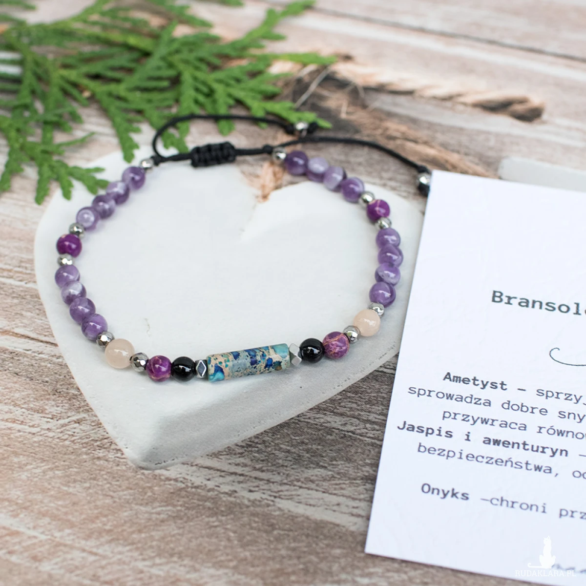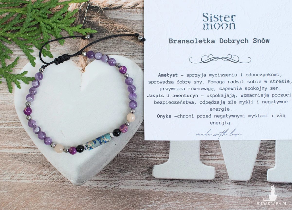 W roli głównej ametyst. Jak żaden inny kamień sprzyja wyciszeniu i odpoczynkowi, sprowadza dobre sny. Ametyst nazywany jest kamieniem harmonii i relaksu. Pomaga radzić sobie w stresujących sytuacjach, przywraca równowagę, zapewnia spokojny sen.Onyks chroni przed negatywnymi myślami i złą energią.