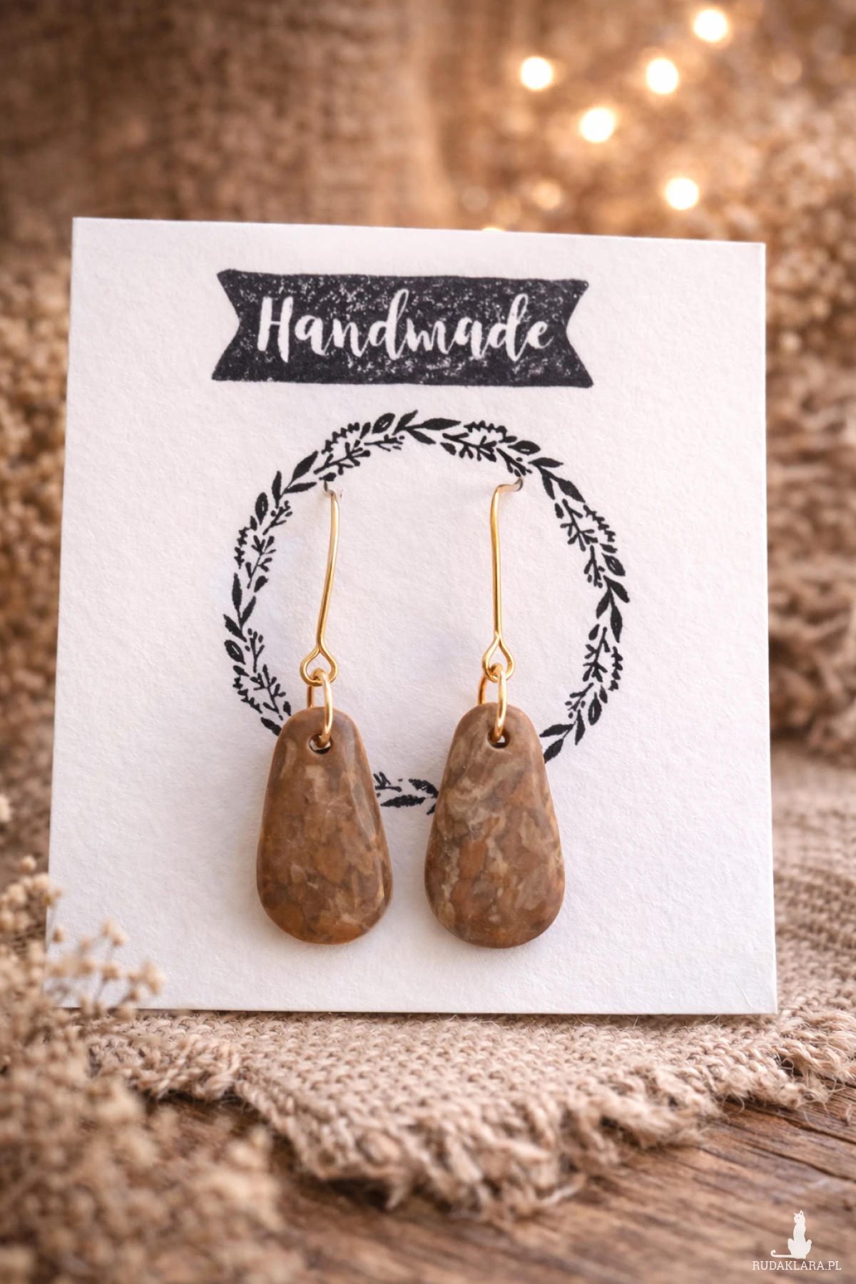 Kolczyki - łezki zostały ręcznie ulepione z gliny samoutwardzalnej. Zabezpieczone lakierem z połyskiem.Wymiary: ok. 2,5 (długość z biglami ). Bigle ze stali szlachetnej, bez niklu i ołowiu.