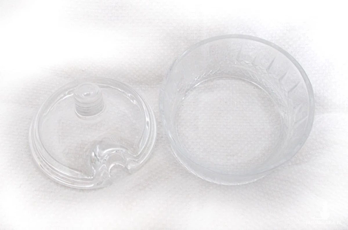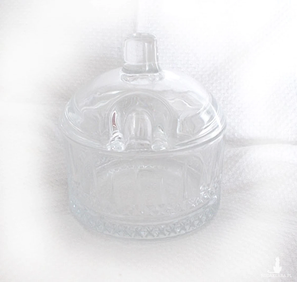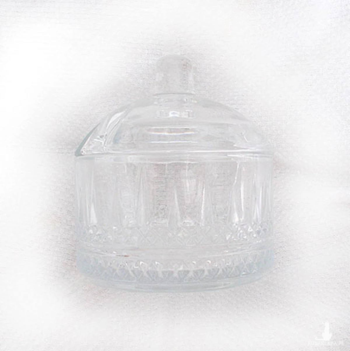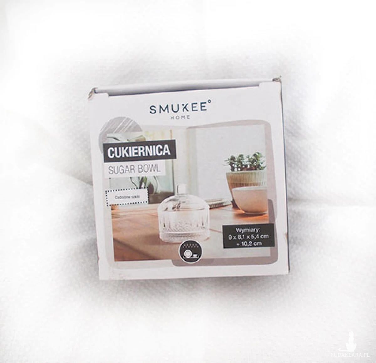 Nowa cukiernica ze szklana z pokrywką. Posiada wycięcie na łyżeczkę do cukru. Marka "Smukee". Praktyczna i ładna cukiernica na stół do jadalni, salonu, kuchni, kawiarni, restauracji itp. Wymiary: wysokość 10,5 cm, szerokość 9 cm. Można myć w zmywarce. Sprawdzi się zarówno w nowocześnie urządzonych wnętrzach, jak i tych bardziej tradycyjnych.