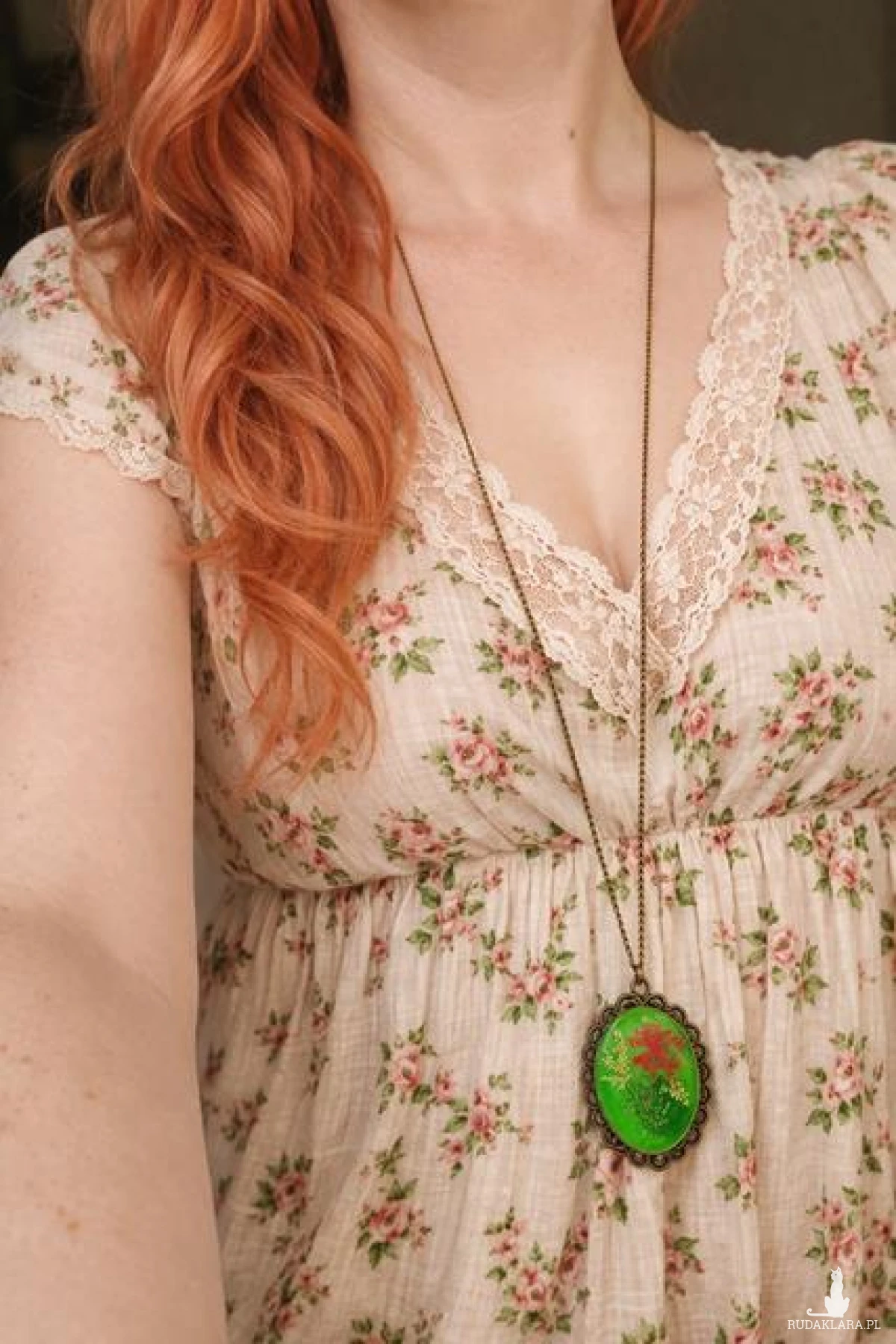 Ażurowa oprawa w kolorze antycznego złota (metal stop jubilerski) nadaje medalionowi elegancji i delikatnego klimatu retro. Biżuteria świetnie komponuje się ze stylizacjami boho, etno, romantycznymi oraz codziennymi.