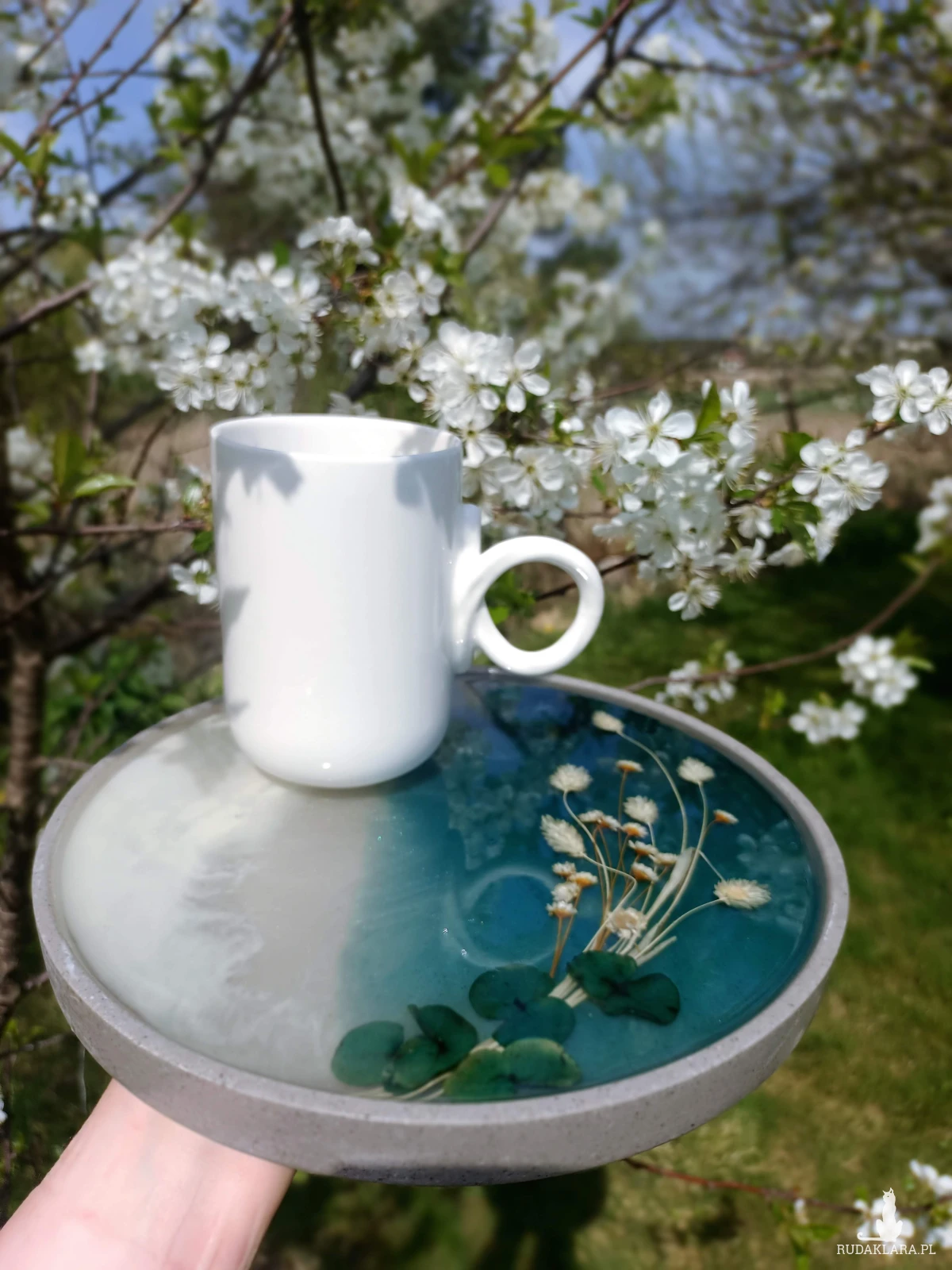 Podstawa tacy wykonana z materiału nawiązującego do betonu.