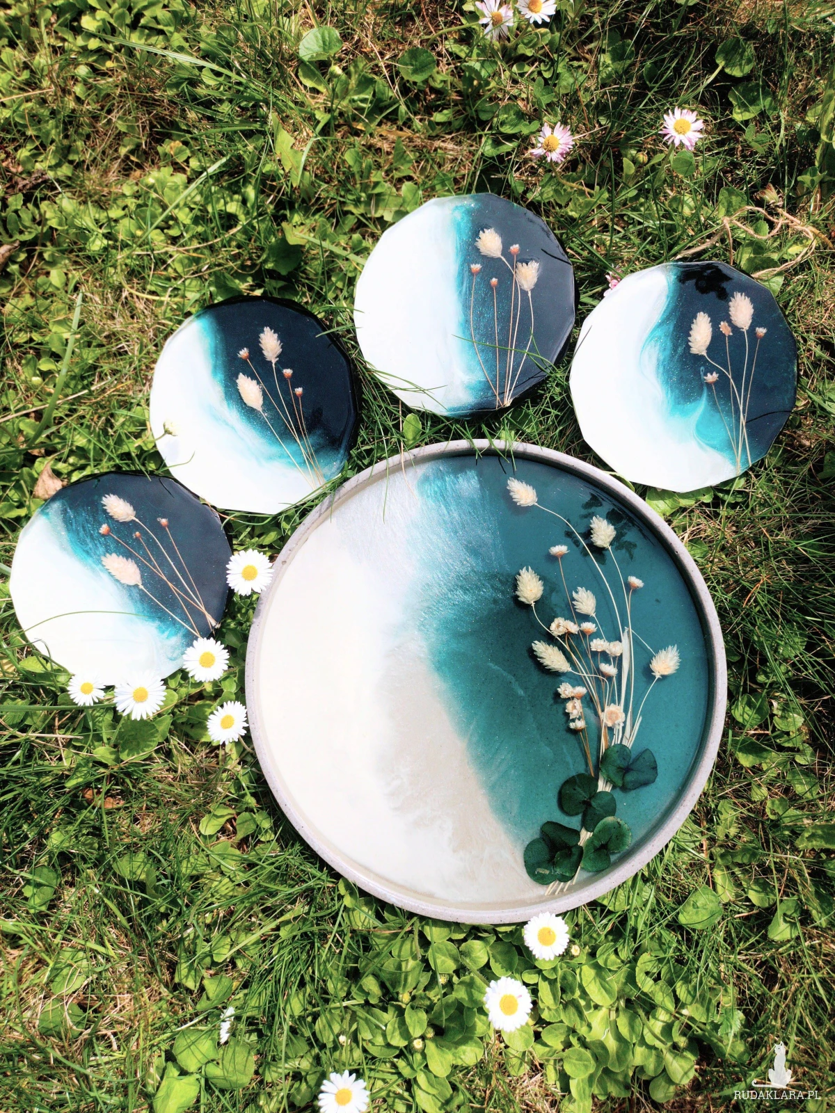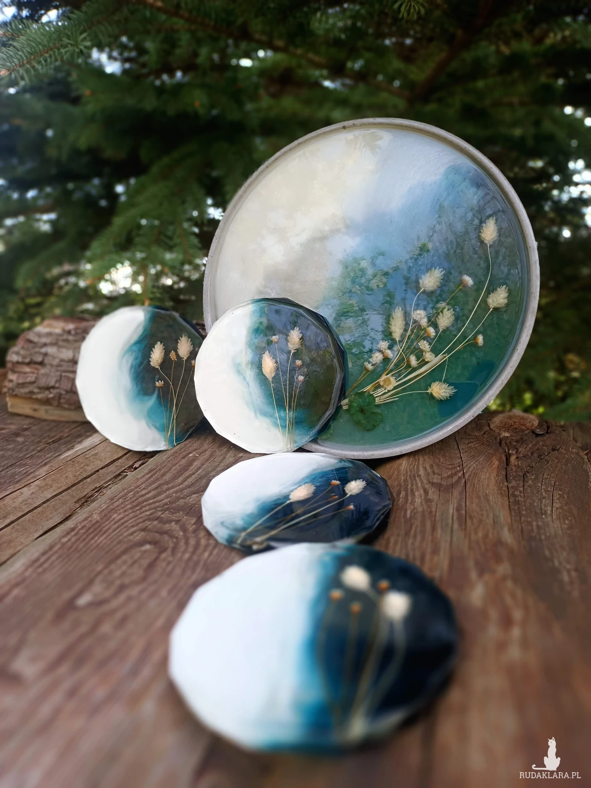 🌿 Taca dekoracyjna z motywem leśnym oraz kompletem 4 podkładek z takim samym motywem