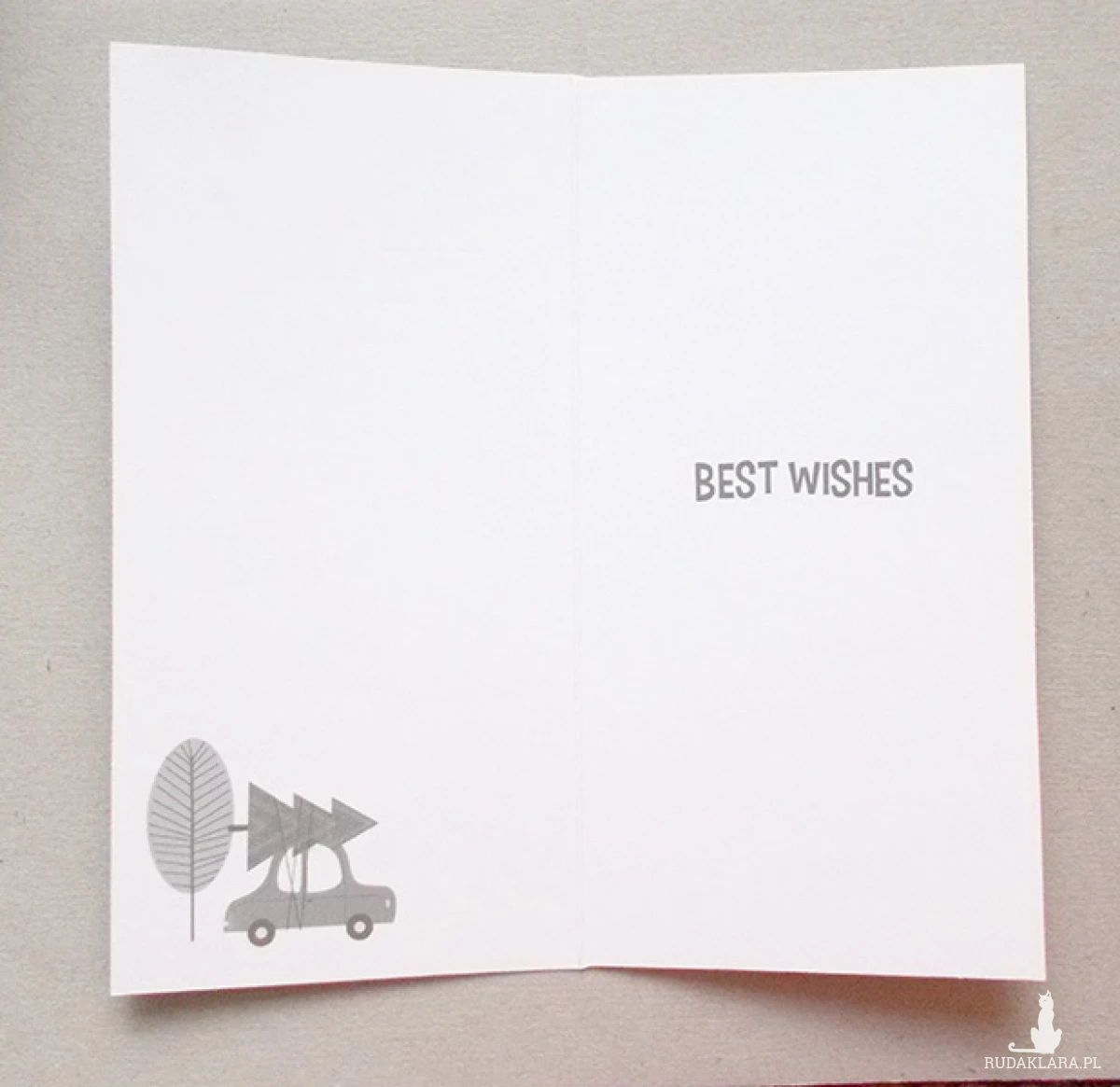 Bożonarodzeniowa kartka z życzeniami w języku angielskim, dołączona biała koperta.