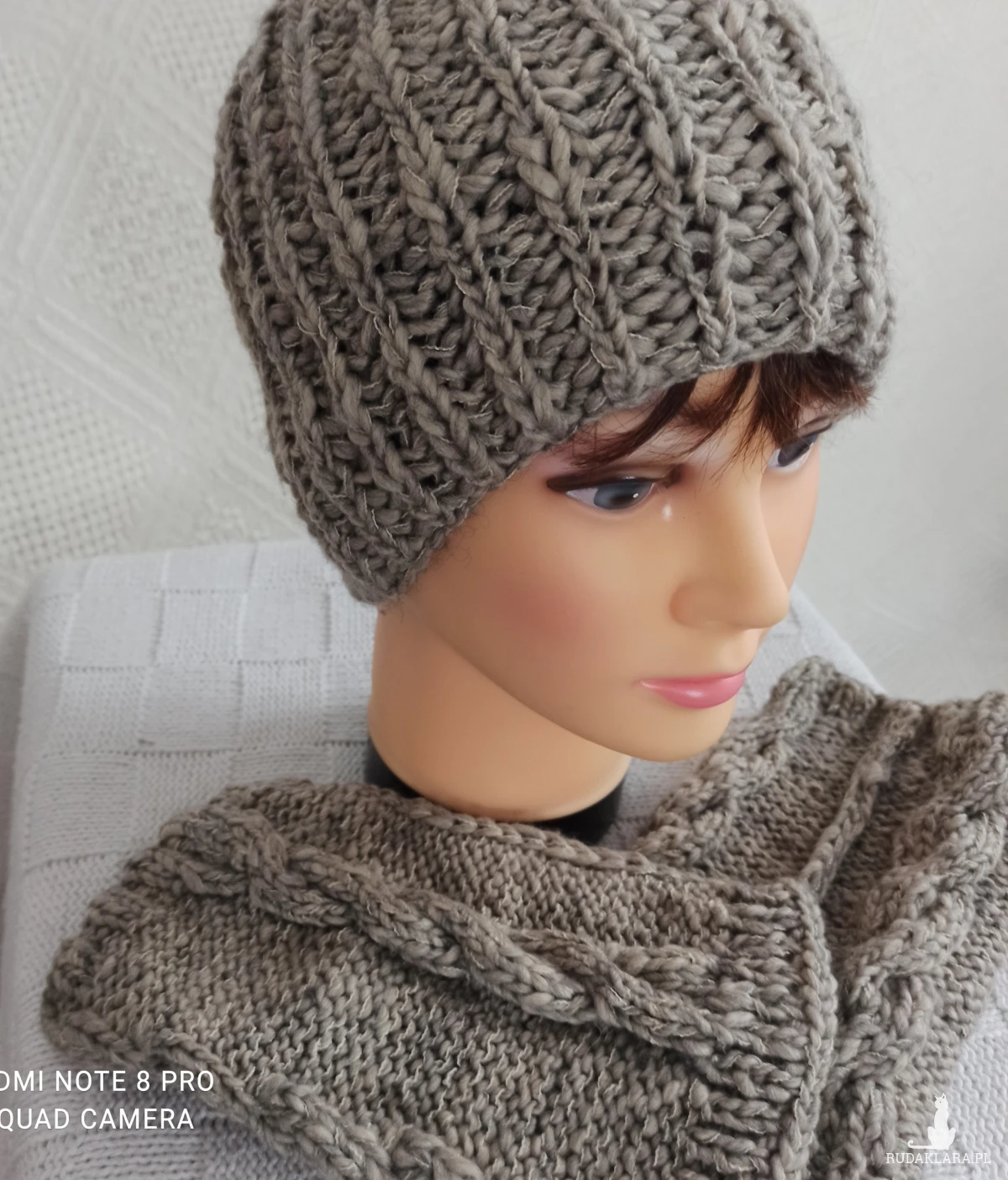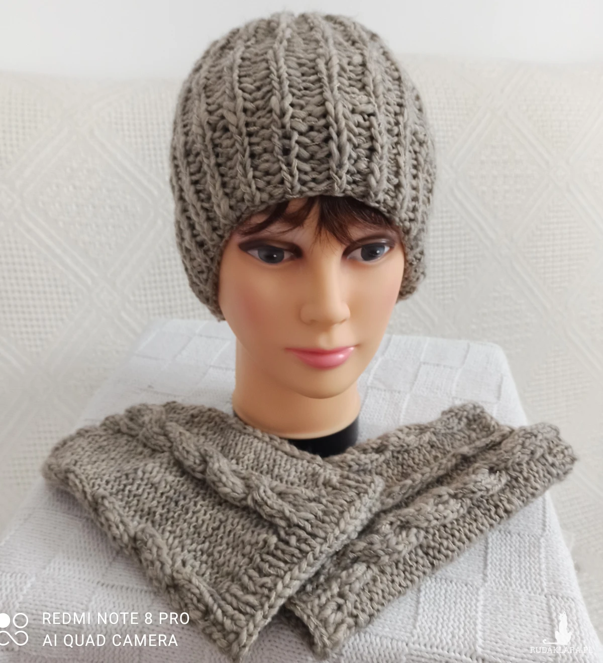 czapka i ocieplacze wykonany z włóczki /naturalna wełna 80%,
