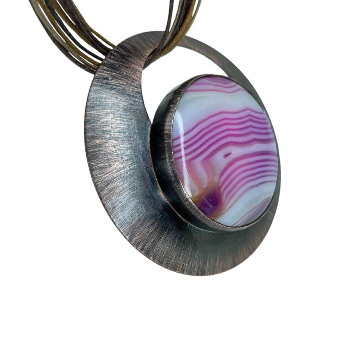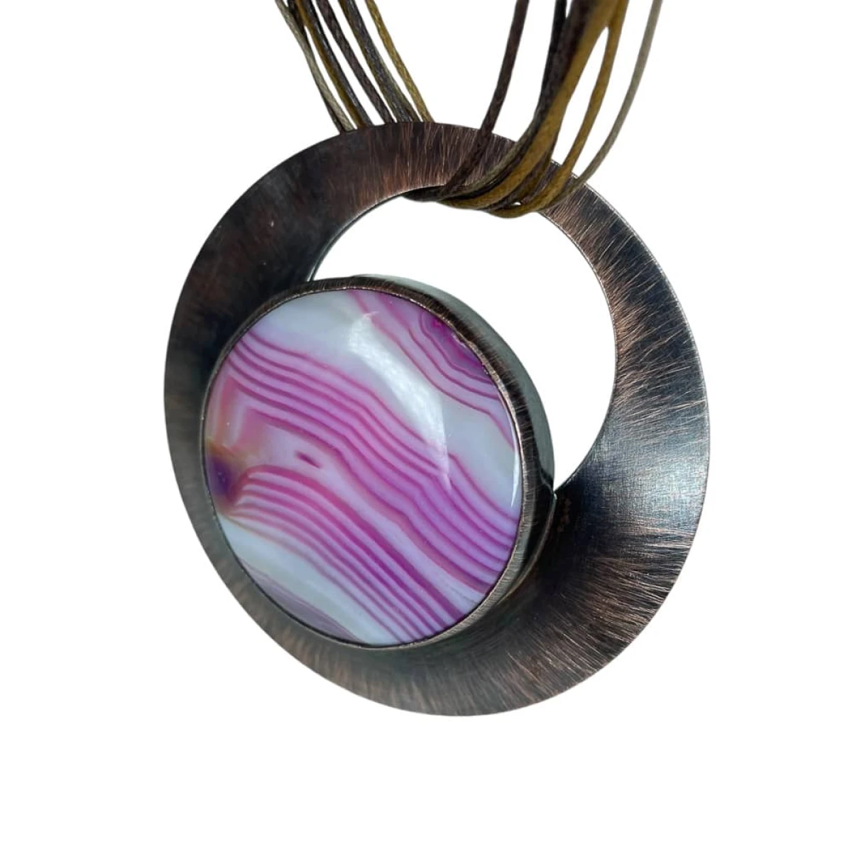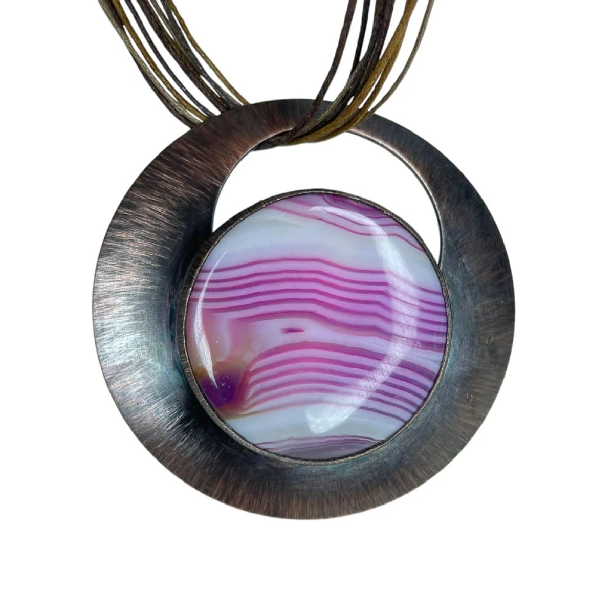“Agatowe krajobrazy” to kolekcja naszyjników z niepowtarzalnymi agatami osadzonymi w miedzi.