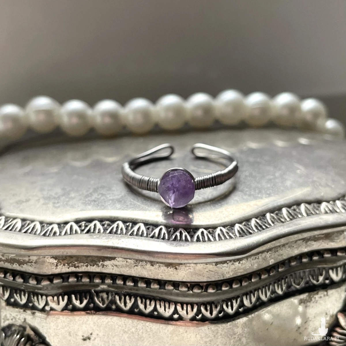 pierścionek AMETYST FASETOWANY stal chirurgiczna