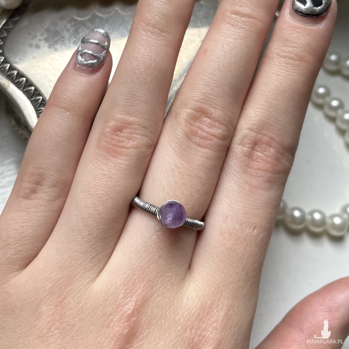 Wykonany ze stali chirurgicznej i naturalnego ametystu :))