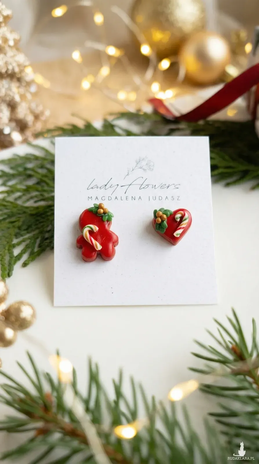 Kolczyki ludziki z serduszkiem ręcznie wykonane z profesjonalnej masy termoutwardzalnej marki Fimo